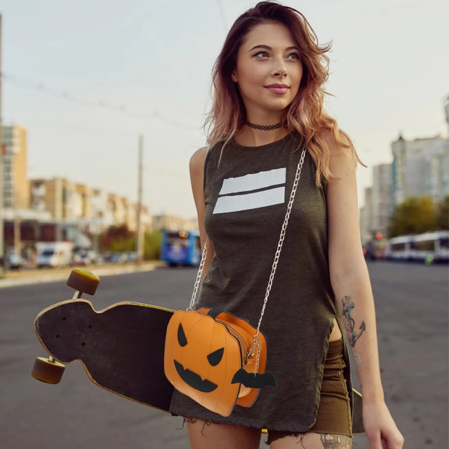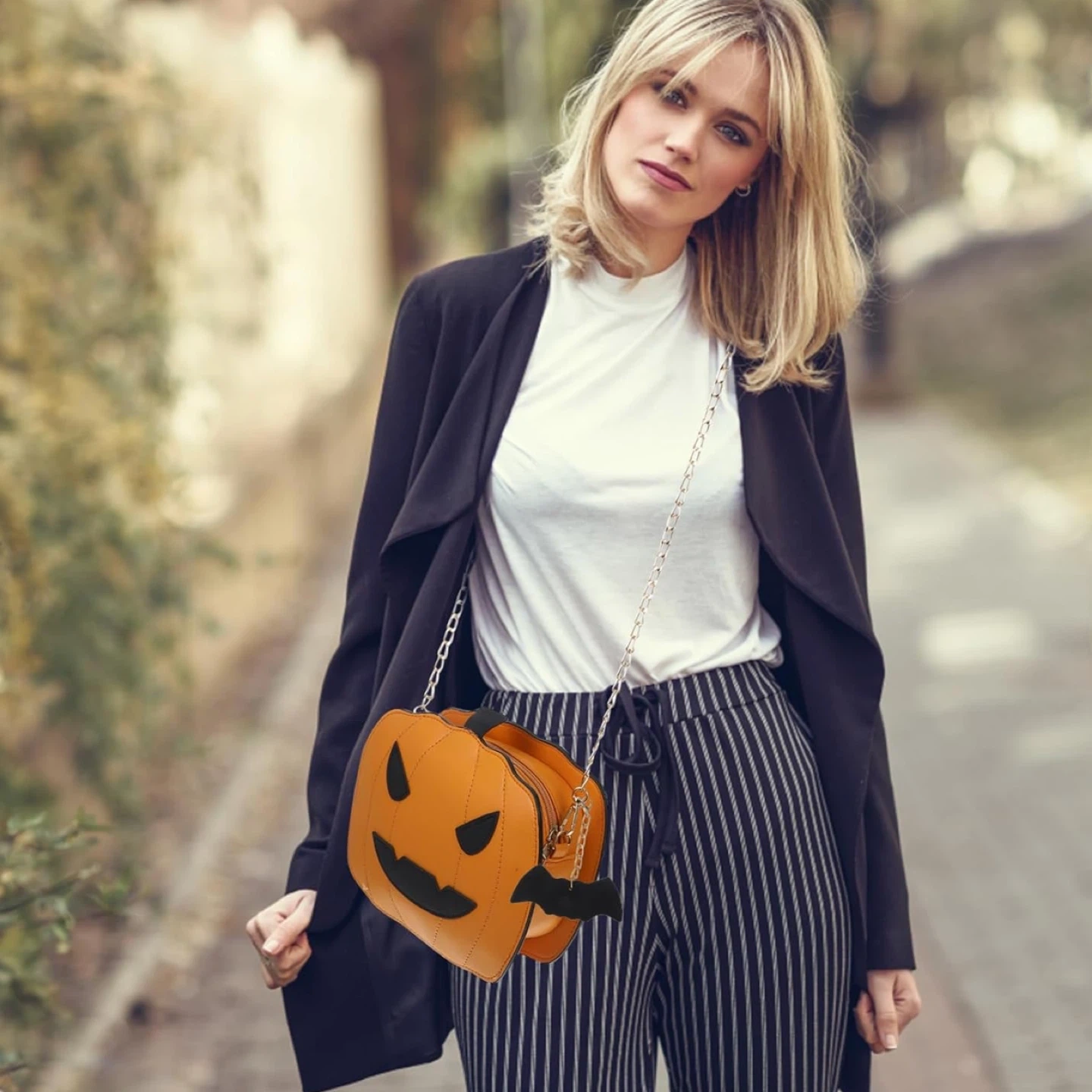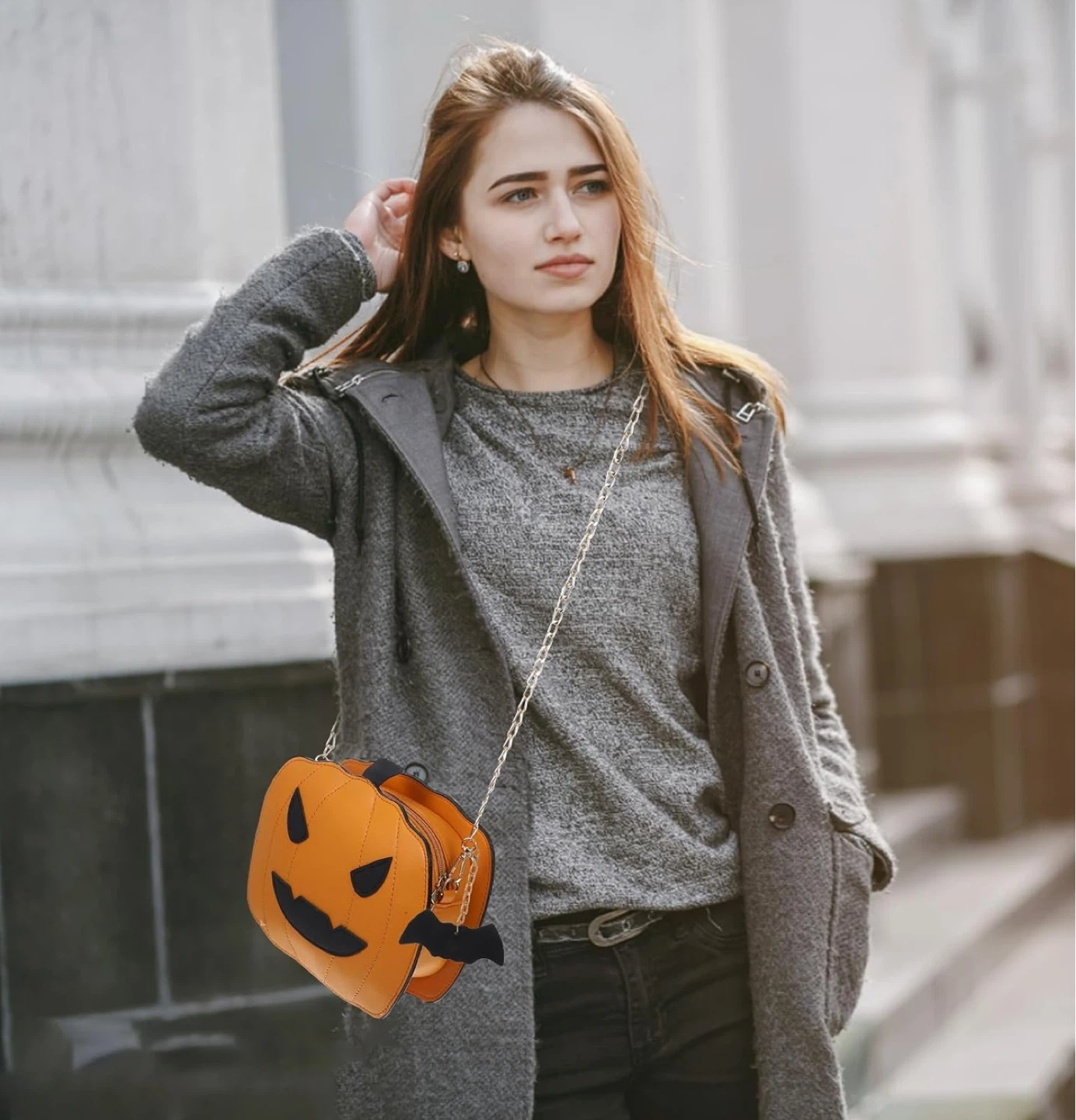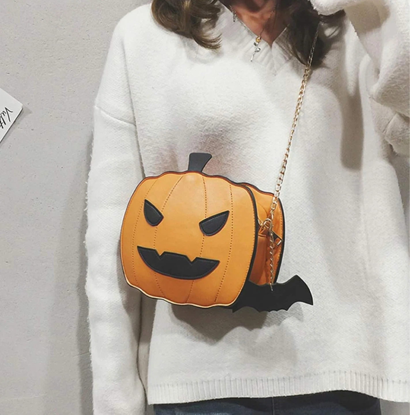 NEW! Pumpkin & Bat Halloween Jack-o’-lantern Crossbody Purse