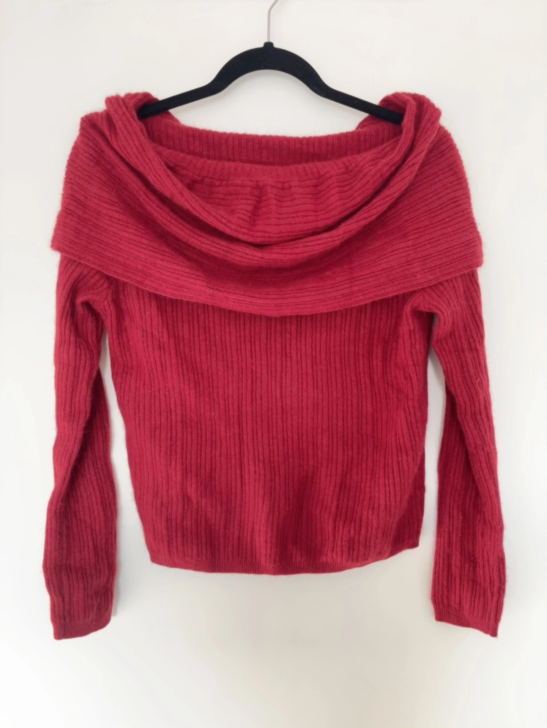 New. Cozy red sweater. Off-the-shoulder style. Long sleeves. Ribbed knit. Perfect for fall and winter. I also have lots of other new or lightly used women’s clothes for sale mostly size S, please contact if you want to come have a look at all of them, thank you.