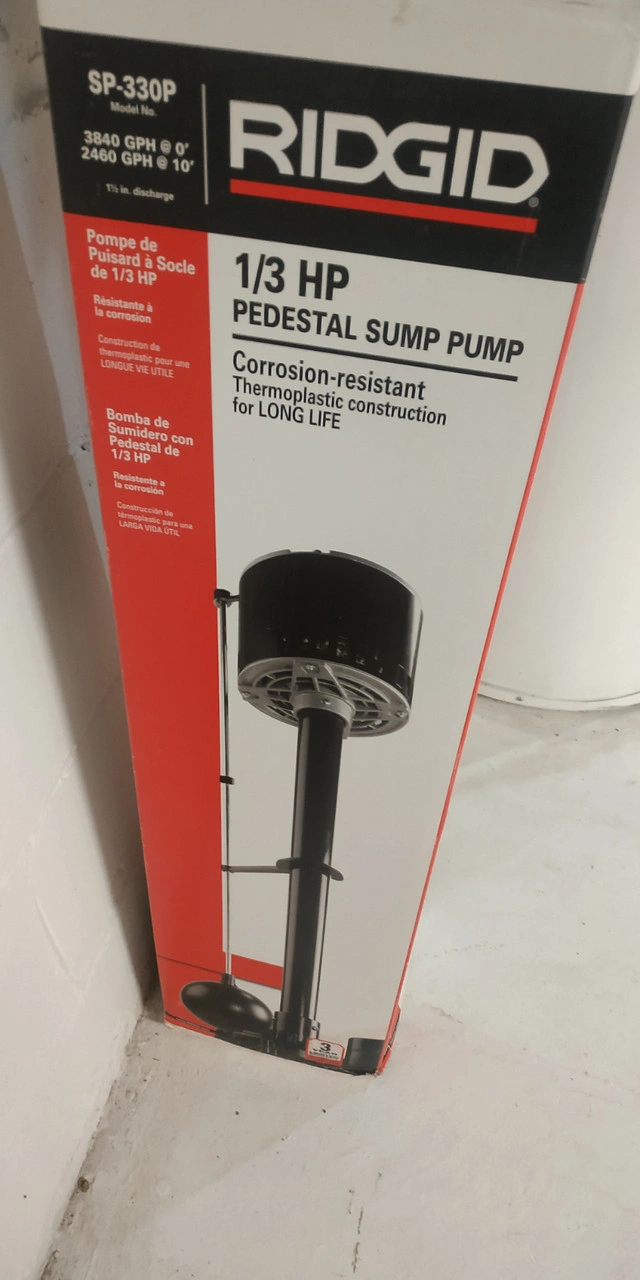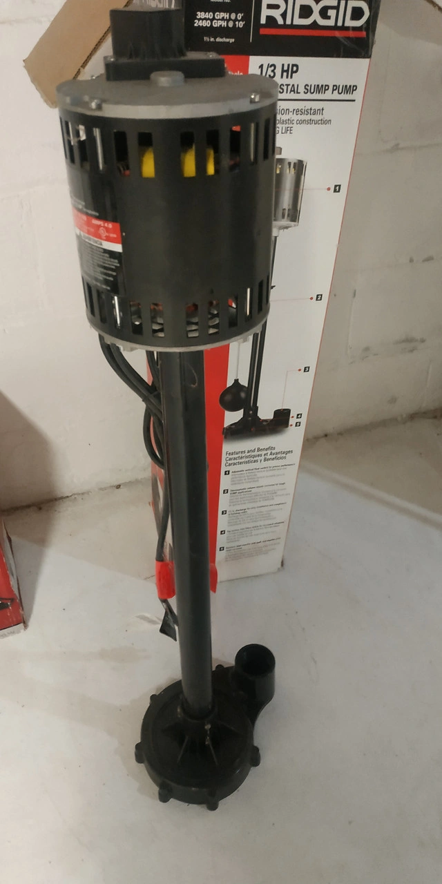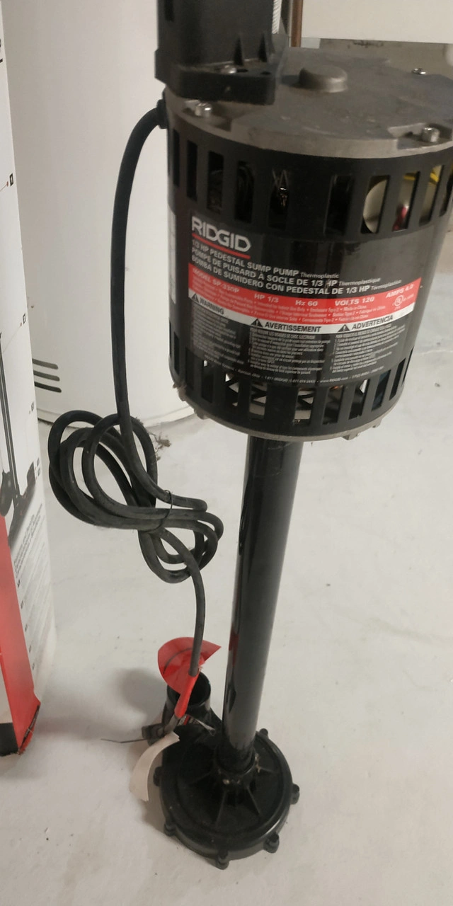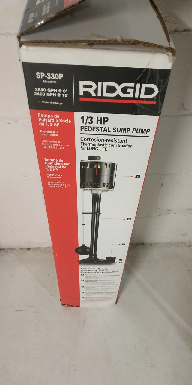 New never used Ridgid 1/3 hp pedestal sump pump Located in East York @ 1111 Broadview ave