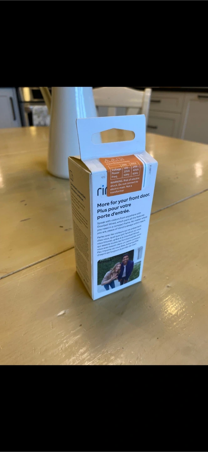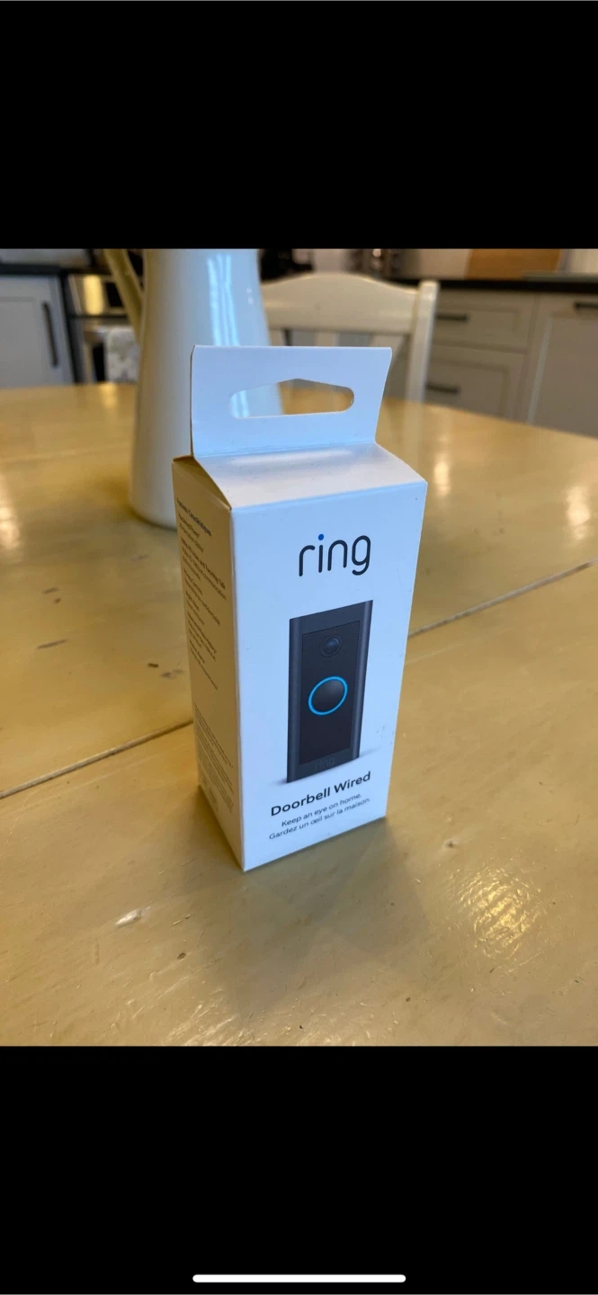 Selling a brand new Ring Doorbell Wired! Got it as a wedding gift and never used it! Keep an eye on what matters most with this reliable doorbell. It's perfect for keeping your front door secure and giving you peace of mind
