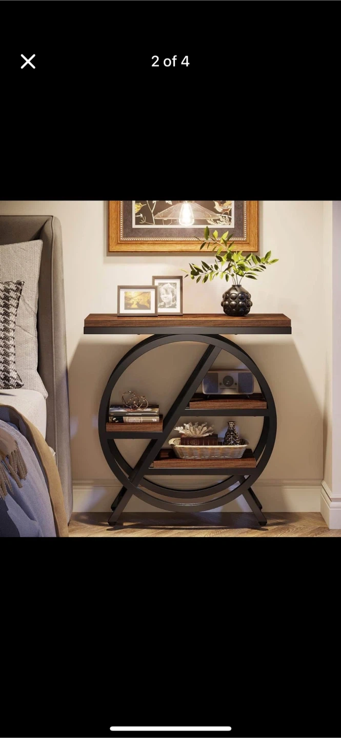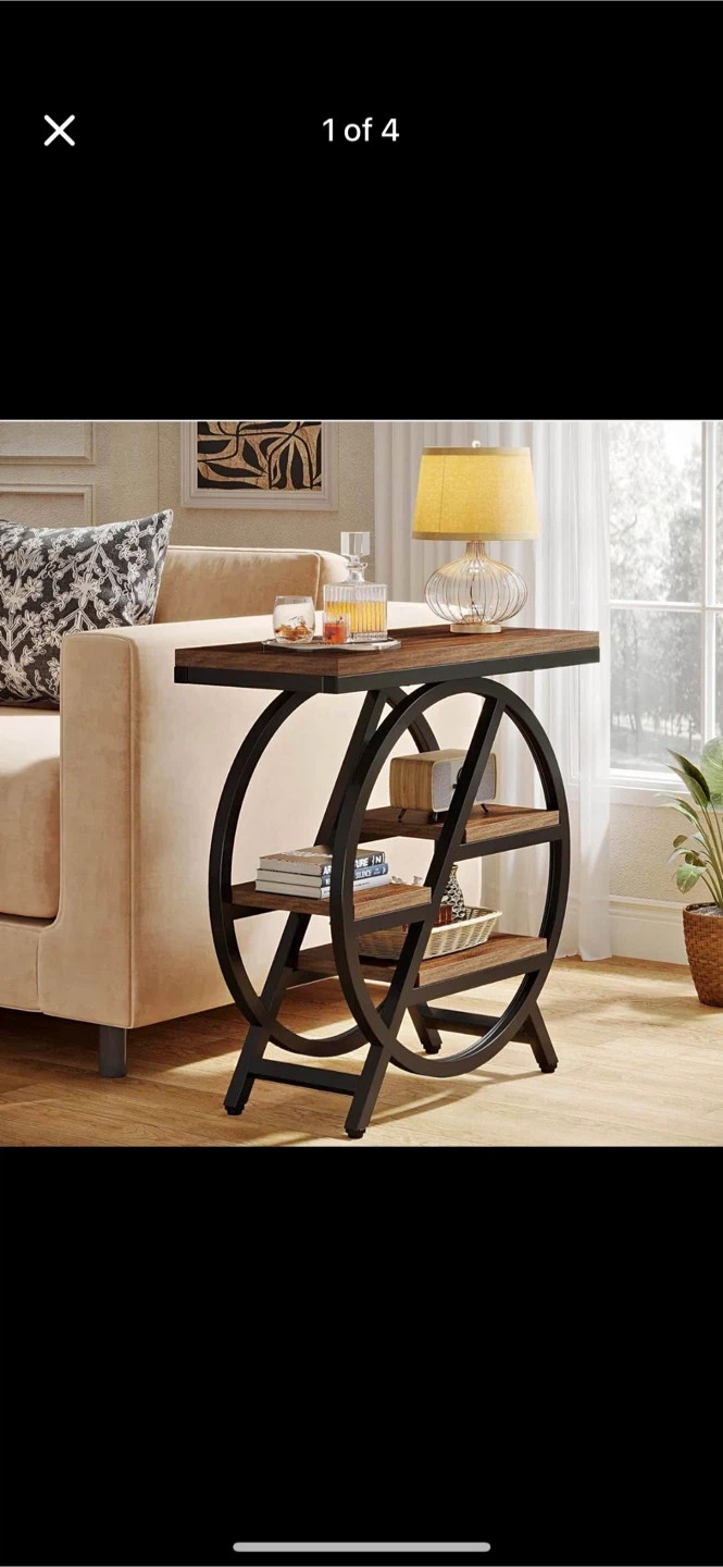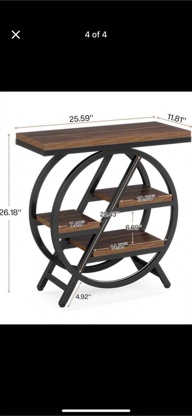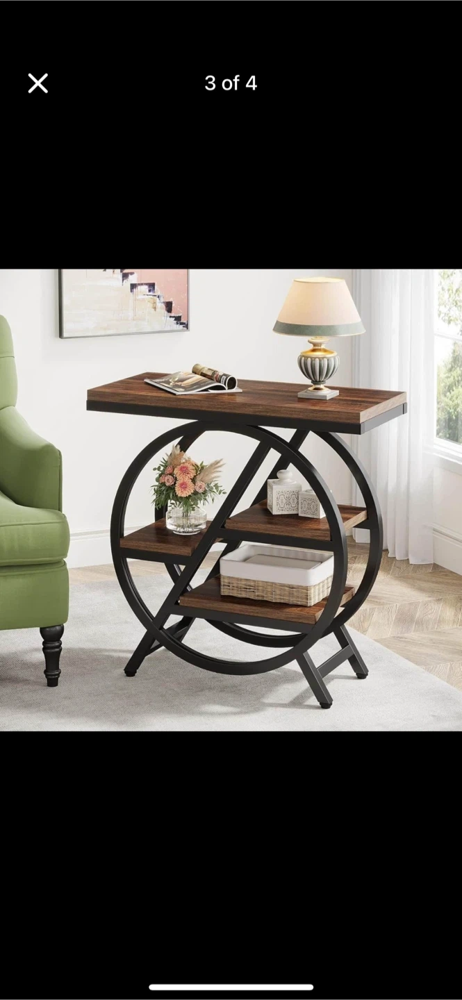 Stylish round accent table with shelves, perfect for adding a touch of modern flair to your living space! The table features a sturdy black metal frame and wooden shelves, providing ample storage and display space. Dimensions are approximately 26.18" H x 25.59" W x 11.81" D New open box Price is firm. Low baller please stay away. 3-Tier End Table with Storage】 With 3 open shelves, this slim side table provides a cozy spot for various items, from your favorite books and indoor plants to desk lamps and other personal adornments. Say goodbye to the chaos, this sofa end table ensures that your living room or bedroom is organized and clutter-free. 【Multifunctional Sofa Side Table】 Displays 2 tables nestle gracefully into your bedroom, serving as bedside tables. This piece can also be used in the living room as an excellent sofa end table, or in your office as a couch table for displaying chic decor items. You can even place it between the sofas to make it a small coffee table. Give free rein to your good ideas! 【Timeless Industrial Chic】 The warm allure of the wood harmoniously plays off the stark elegance of the cold metal frame. The rectangular wooden top in rich rustic brown offers depth to your decor, while the geometric frame introduces a chic elegance. This small side table will be a fine testament to your refined taste, effortlessly adding character to your home decor. 【Stable and Durable】 The rustic side table is robustly constructed with 0.59" E1 high-grade particle board shelves and a heavy-duty metal frame, able to support up to 30 lb. The retro veneer is water-resistant, scratch-resistant, and super easy to clean. 4 adjustable foot pads of this living room end table keep it more stable even on uneven floors and prevent scratches. #SideTableForSale #IndustrialHomeDecor #RusticEndTable #LivingRoomEssentials #SmallSpaceFurniture #MinimalistStyle #NewFurnitureFind #OpenBoxDeal #3TierStorageTable #MultiUseFurniture #BedroomAccentTable #MetalAndWoodDesign #ChicInteriorFinds #MississaugaFurnitureSale #FurnitureWithStorage #FunctionalDecor #HomeUpgradeSale #StylishSideTable #DurableHomeGoods #CoffeeTableAlternative