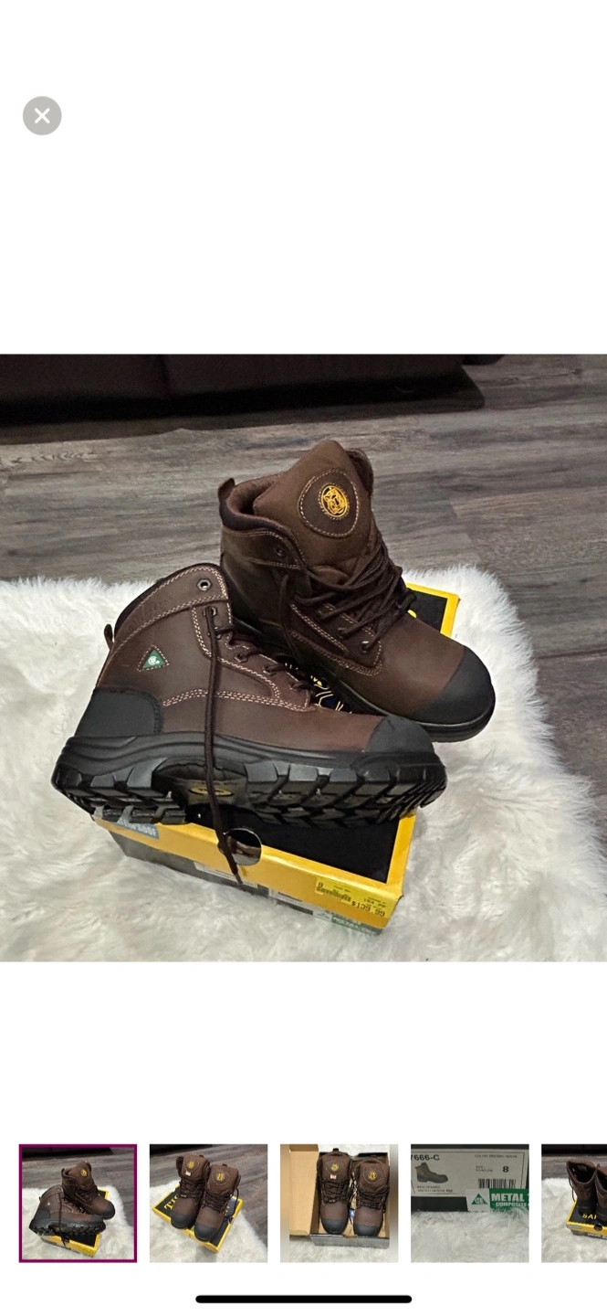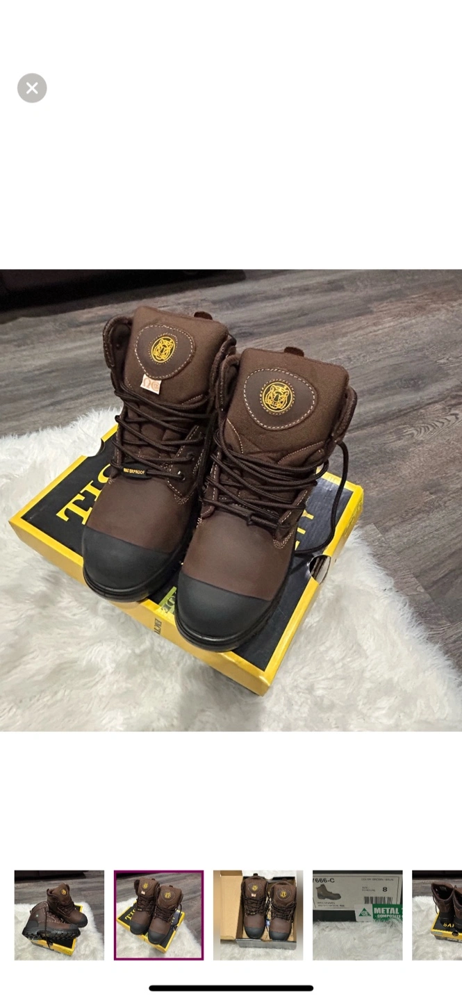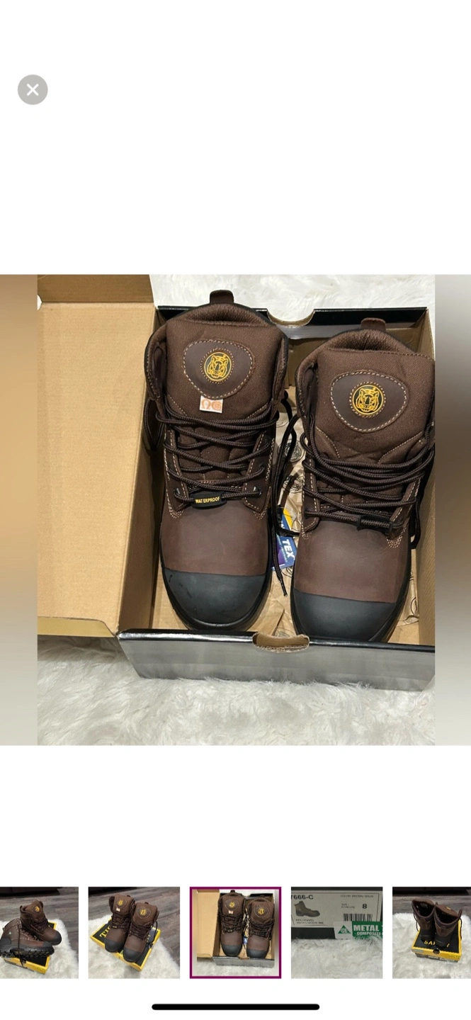 I'm selling a pair of new Safety work boots in size 8! They're brown and come with the original box. The boots are waterproof and have metal composite toes. Originally bought for $139.99
