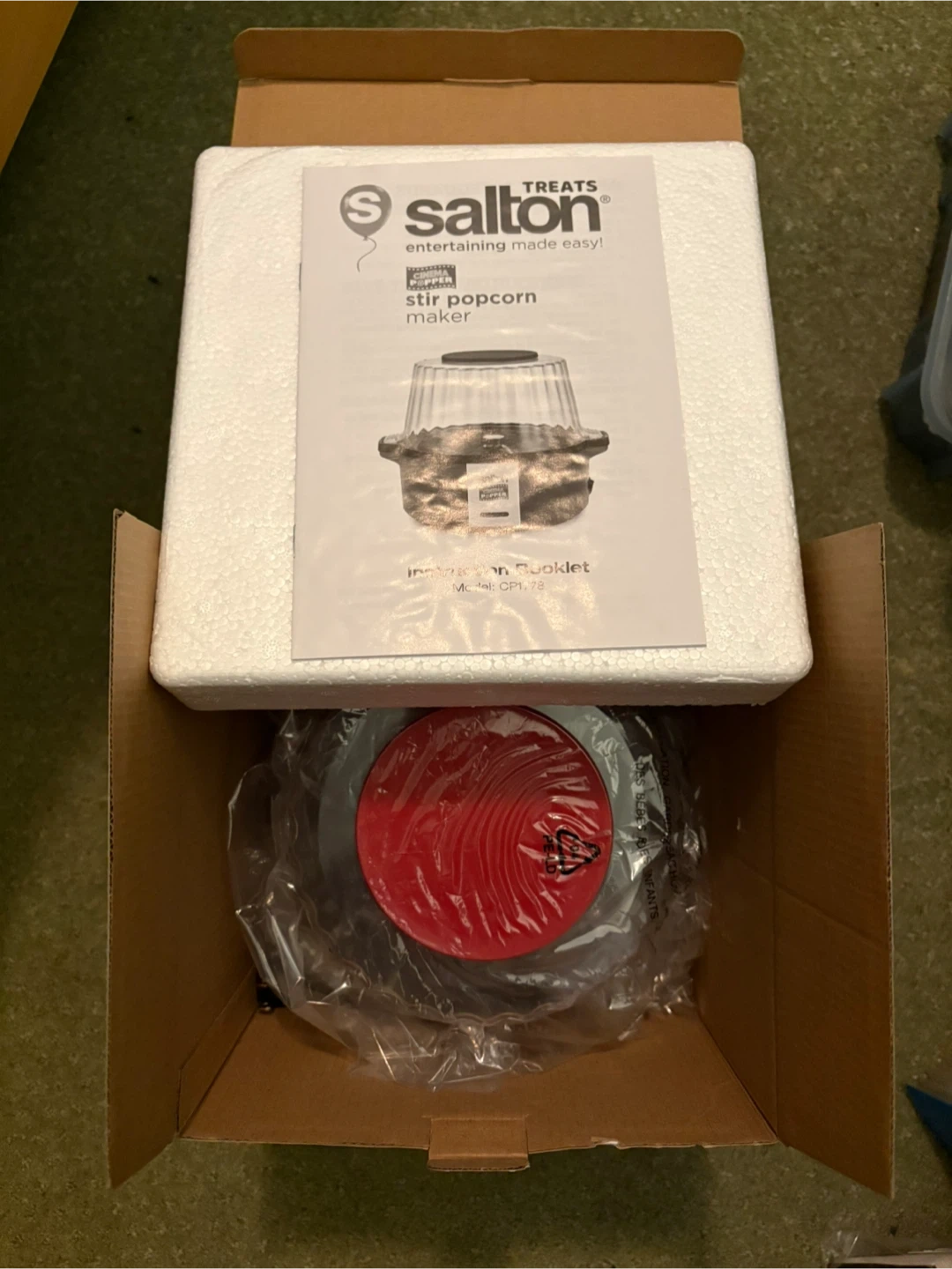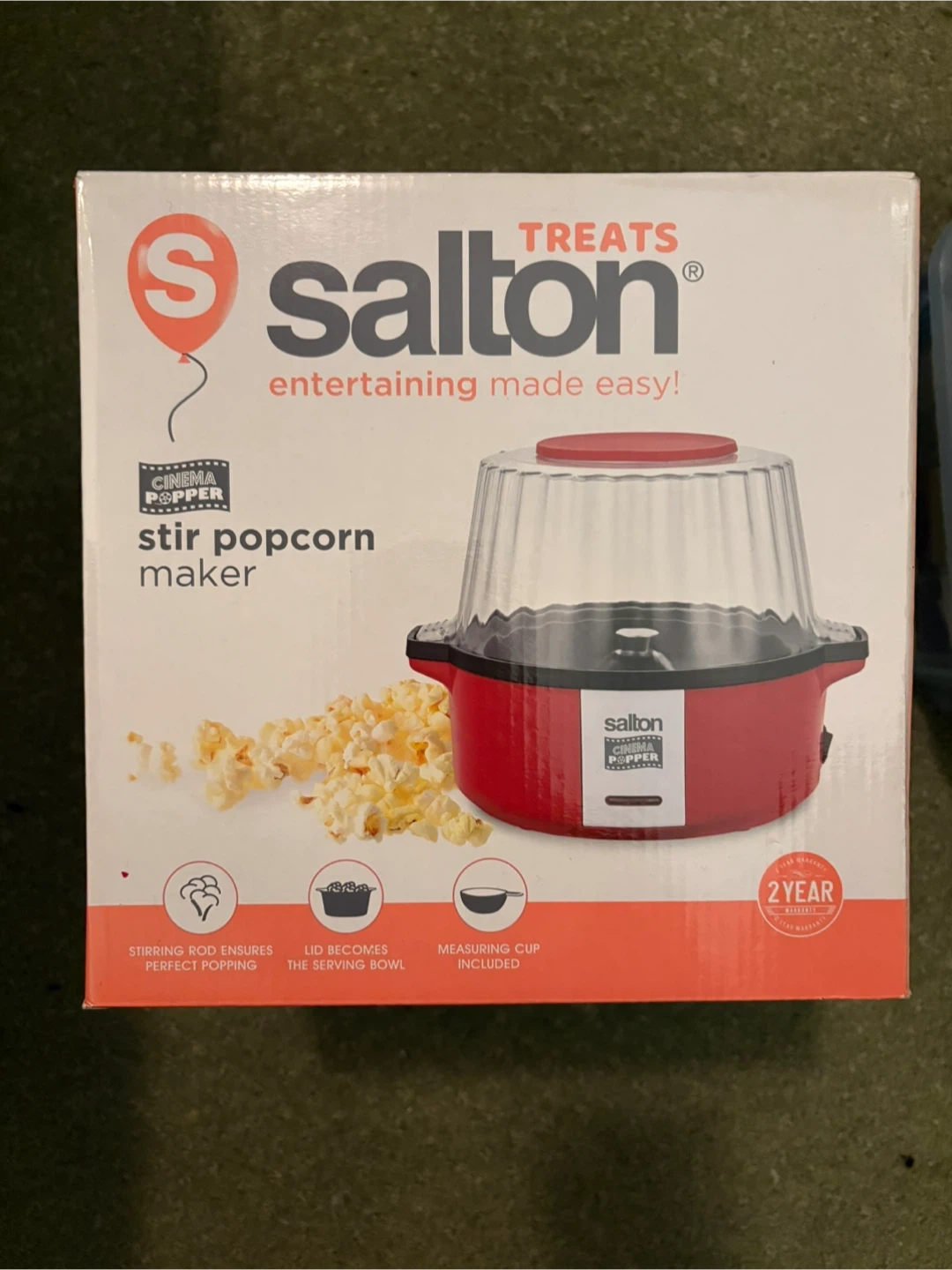 Selling a brand new Salton Stir Popcorn Maker. It's still in its original box, ready to make some delicious popcorn. - Stirring rod ensures perfect popping - Lid becomes the serving bowl - Measuring cup included From a pet-free and smoke-free home. Might be able to help with delivery if you live on the North Shore.