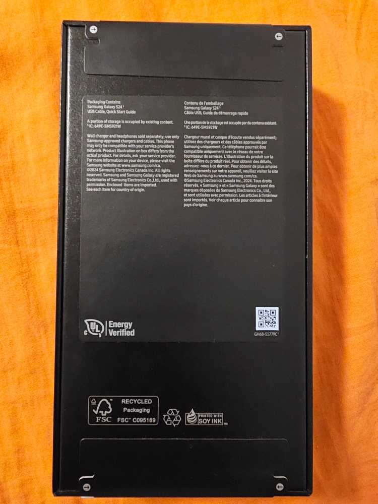 Selling the box for a brand new Samsung Galaxy S24. It includes the USB-C cable and the start guide. Please note that charger is not included.