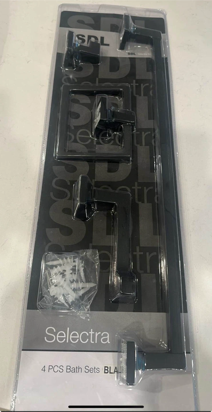 Selling a brand new, still-in-packaging Selectra 4-piece bath set! It's a sleek black colour and includes all the necessary hardware for installation. Perfect for upgrading your bathroom!