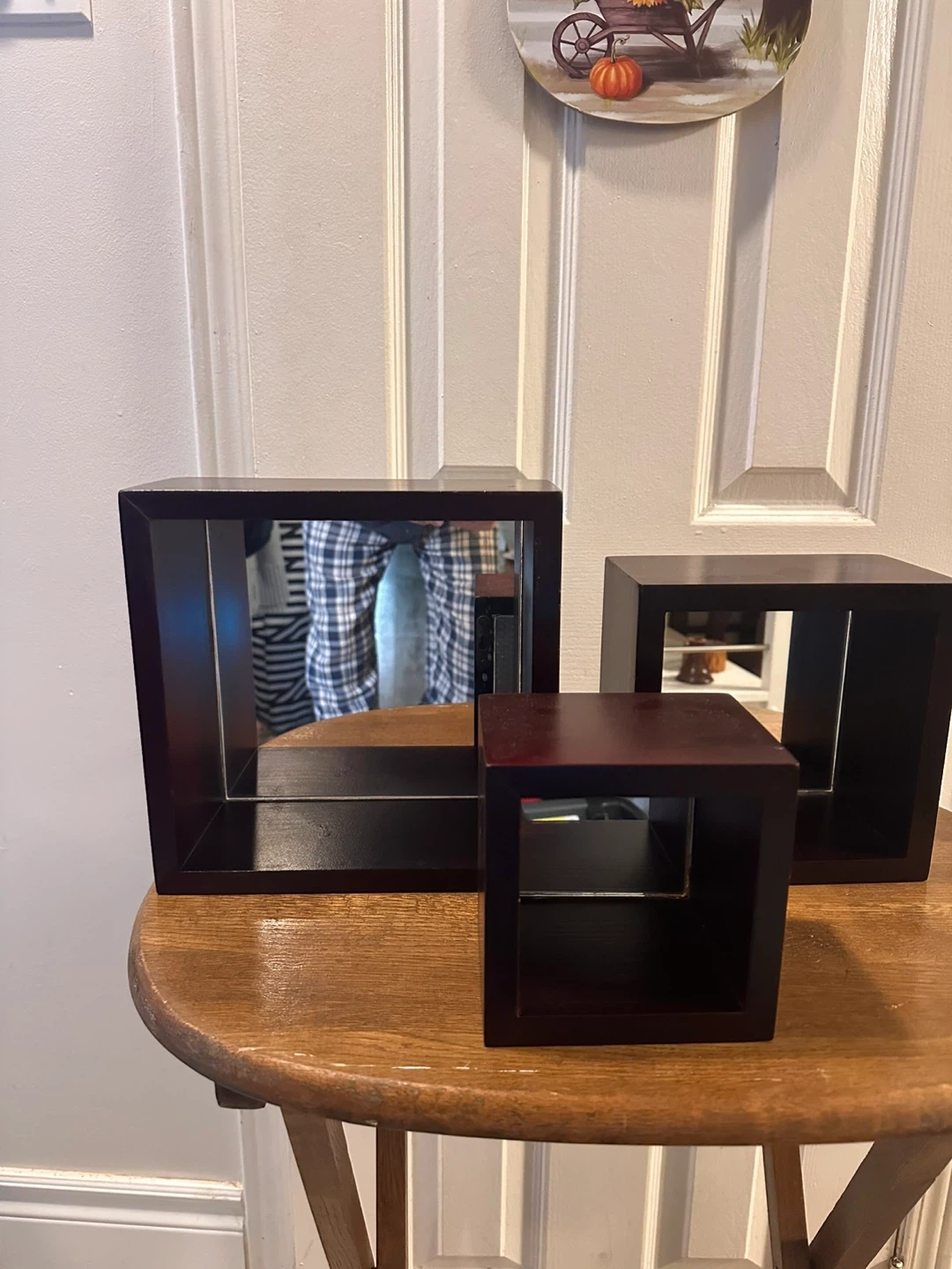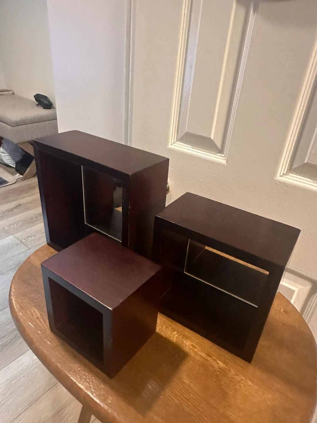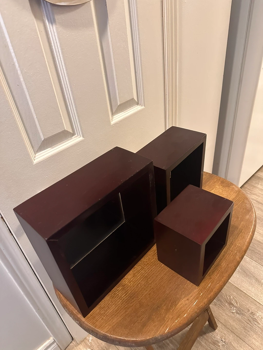 Set of 3 Wood Side Tables, Brown Finish, 20" Square