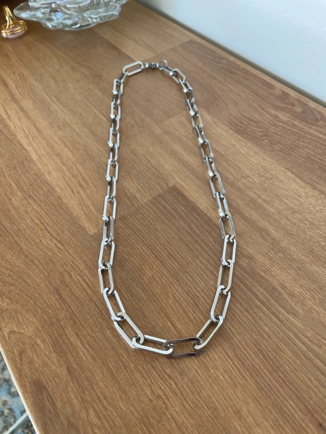 Silver coloured chain necklace. Features a safety pin clasp. Great for layering or wearing alone.