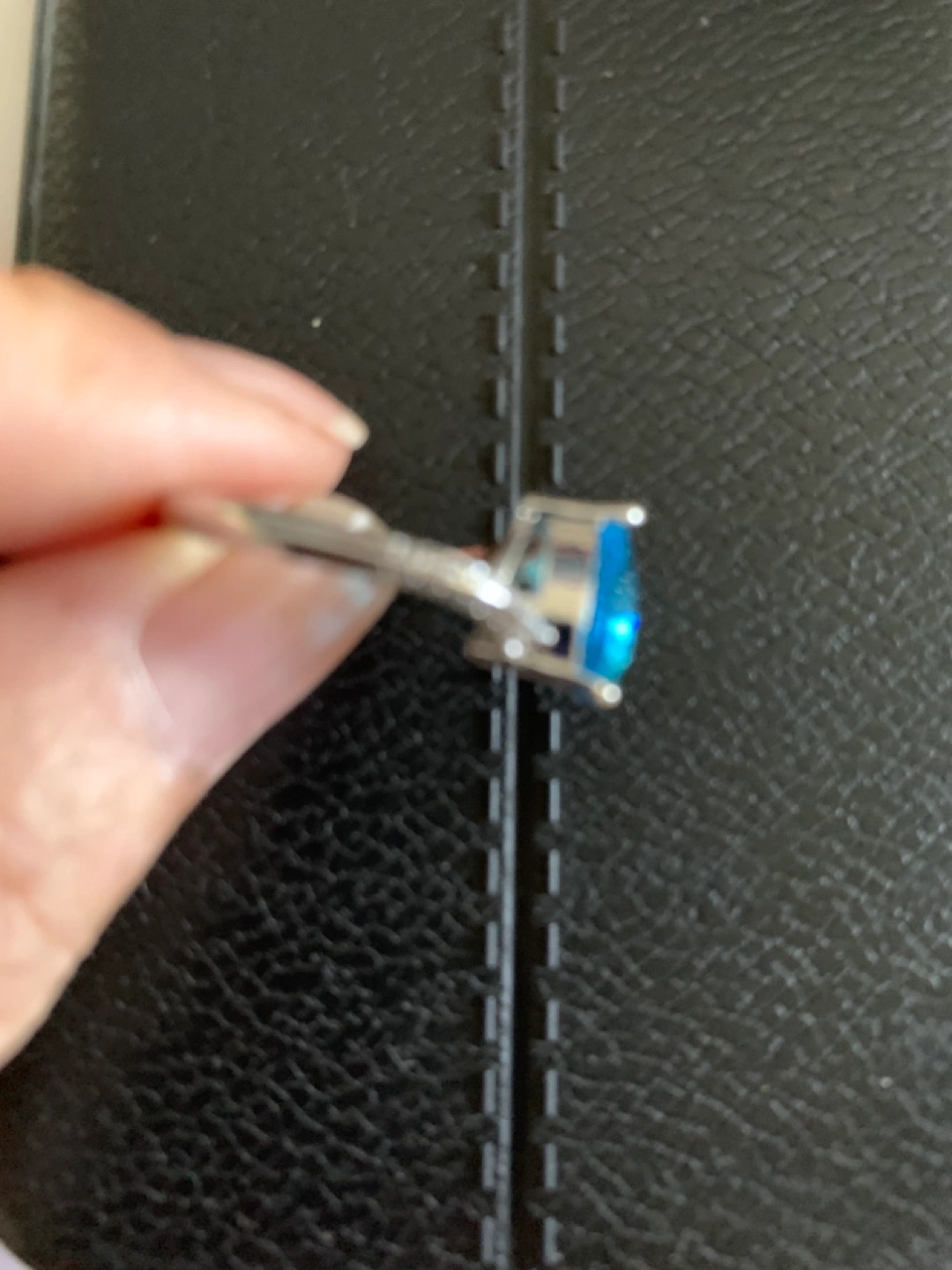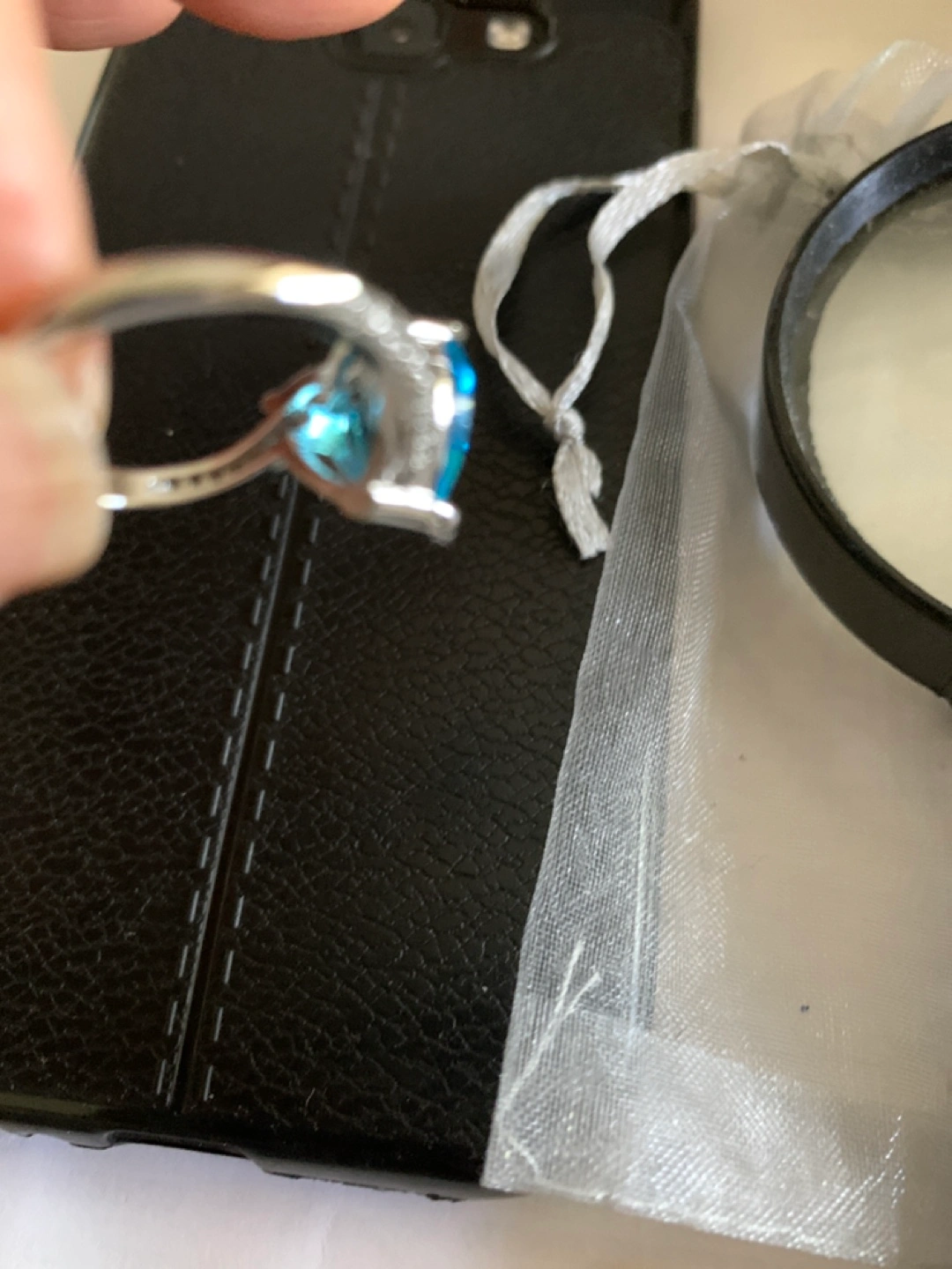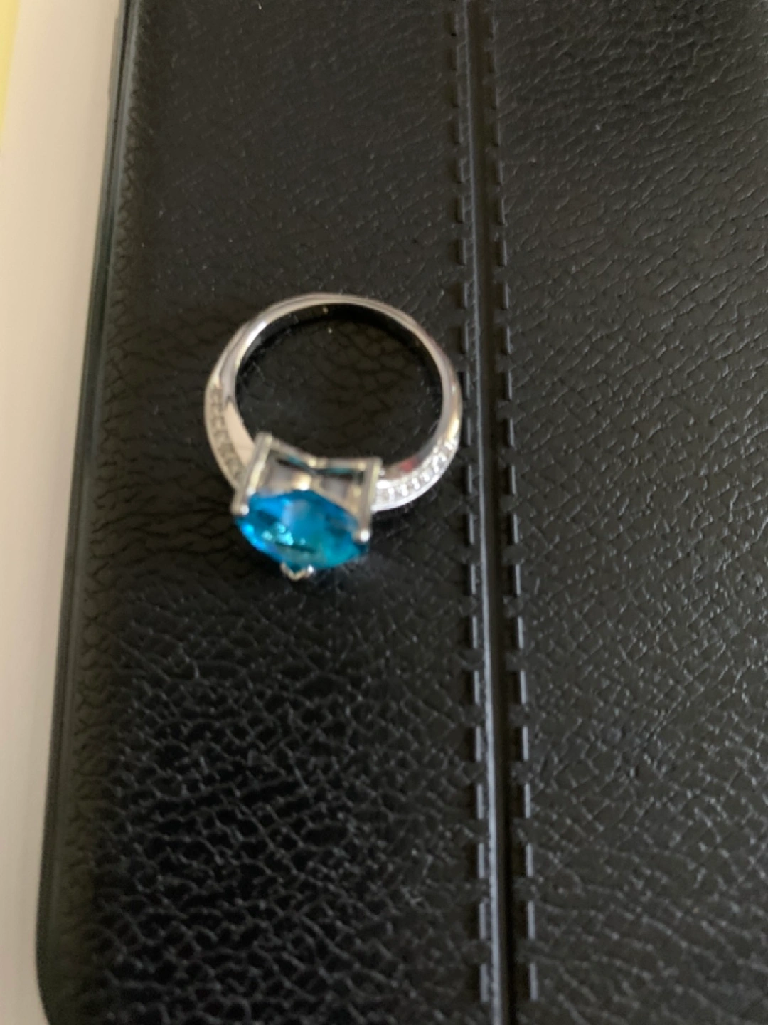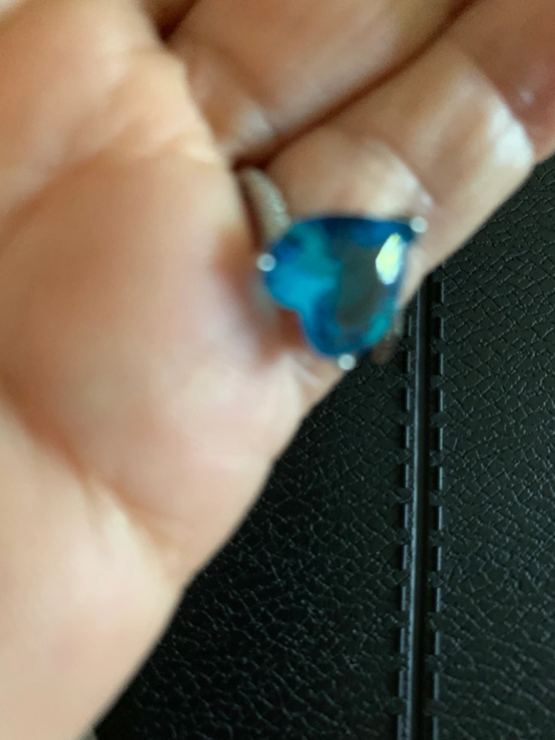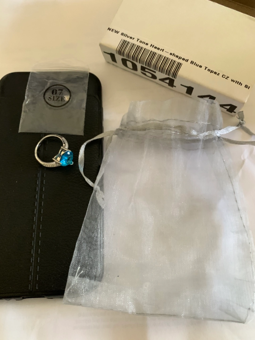 Selling a brand new silver tone ring featuring a heart-shaped blue topaz CZ stone. It's a size 7 and comes with its original box and a small gift bag! This ring is sparkly and ready to wear.
