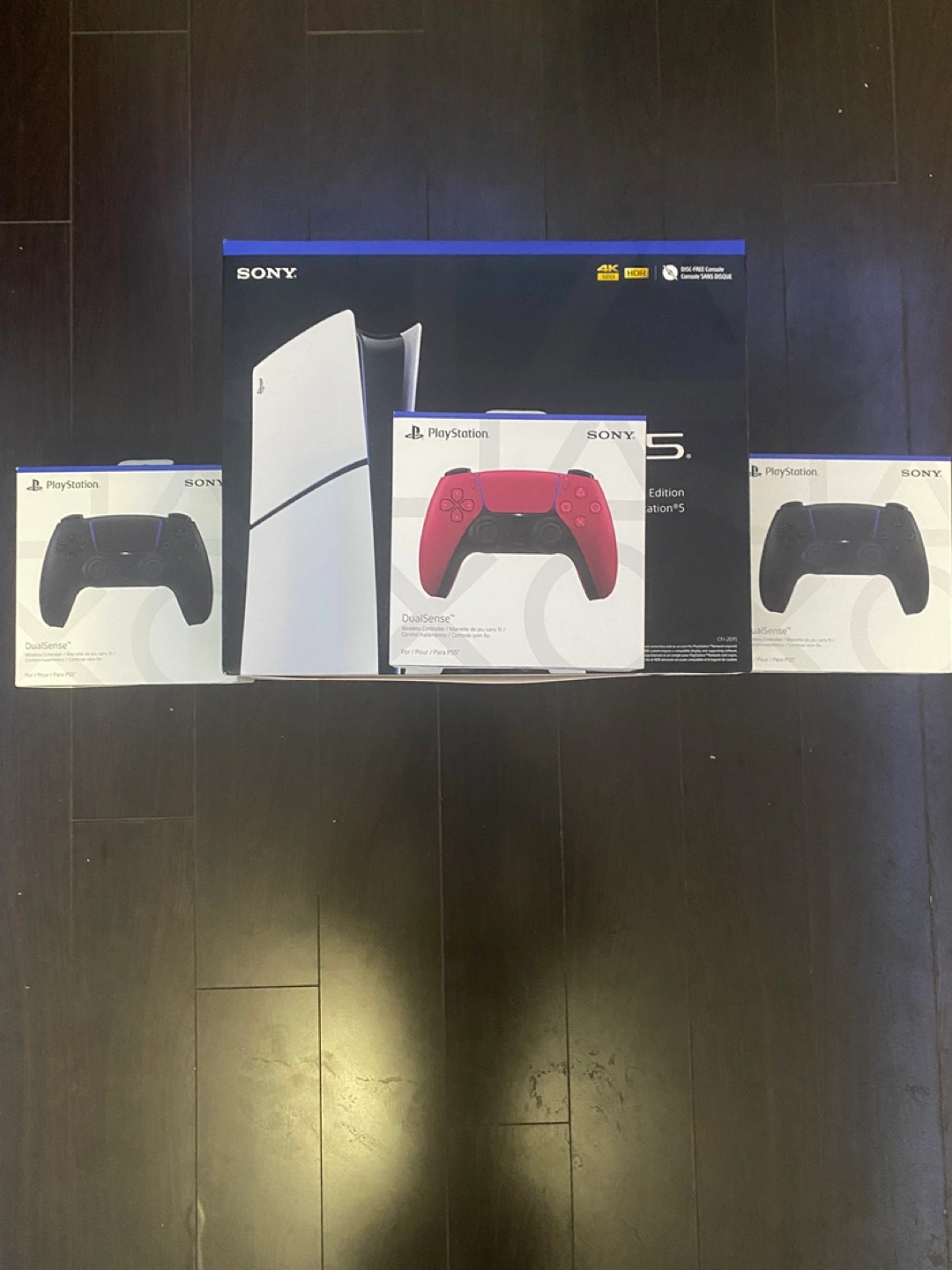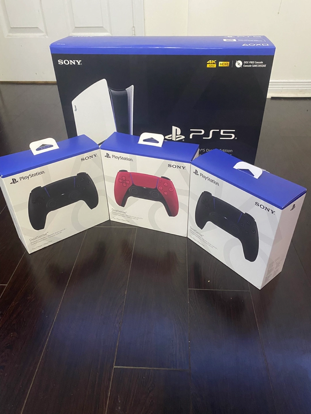 Selling new Sony PlayStation 5 with 3 DualSense Wireless Controllers. The controllers are brand new in box also the console. Available in black,red and white . Great to have for family or friends