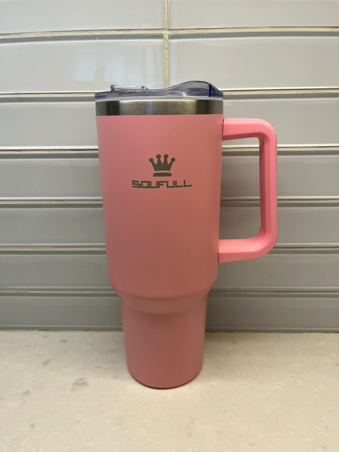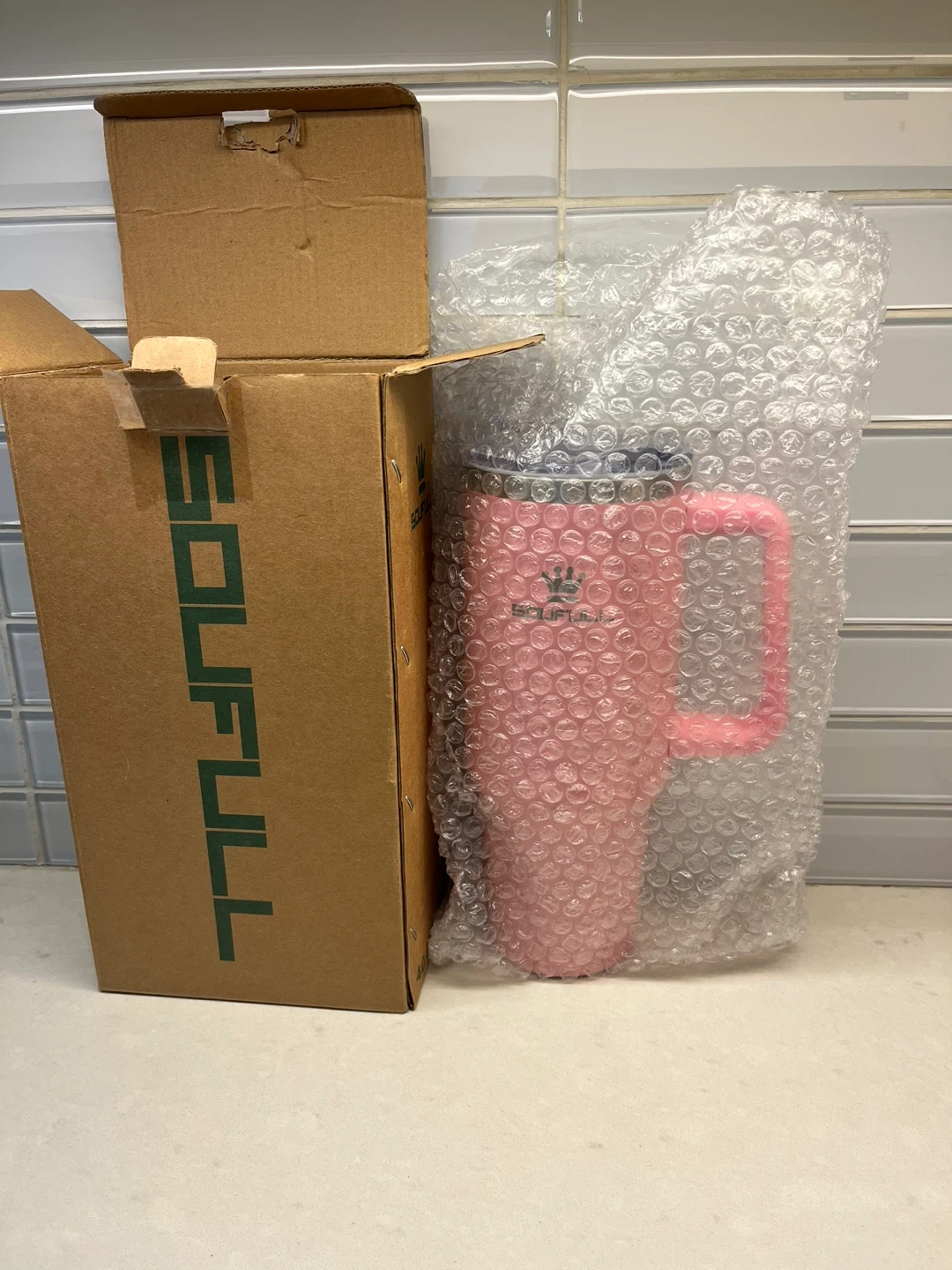 Brand new Soufull tumbler in a lovely pink colour! It comes with a handle and the original box, perfect for keeping your drinks cold or hot on the go