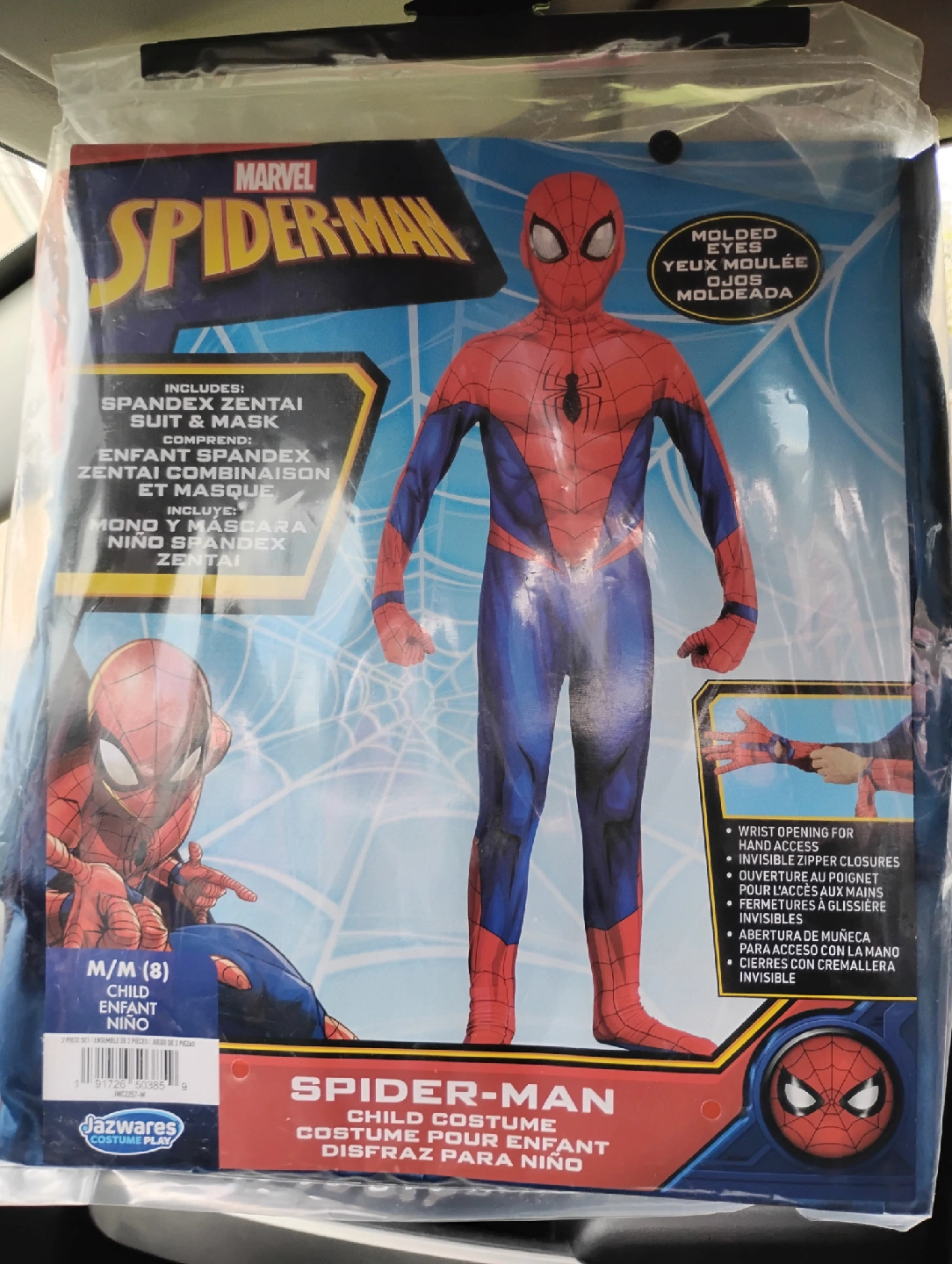 Selling a brand new Spider-Man child costume! It's a size M/M (8) and includes the spandex zentai suit and mask. Perfect for your little superhero!