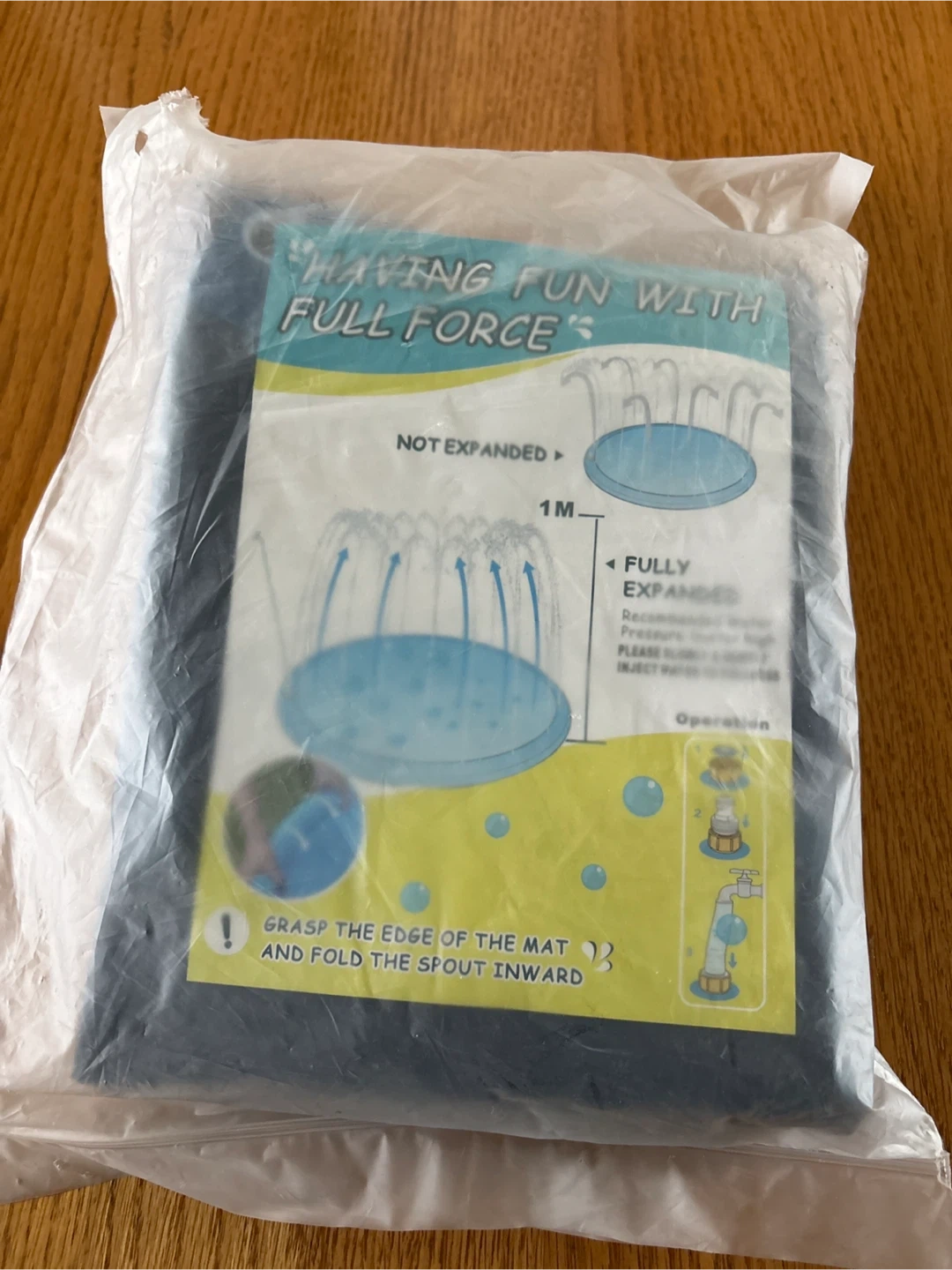 Brand new splash pad still in its original packaging! It's a great way to have some fun with water. Just grasp the edge of the mat and fold the spout inward, and you're ready to go. Splashes up to 1 meter high. Ideal and safe fun for toddlers and little kids
