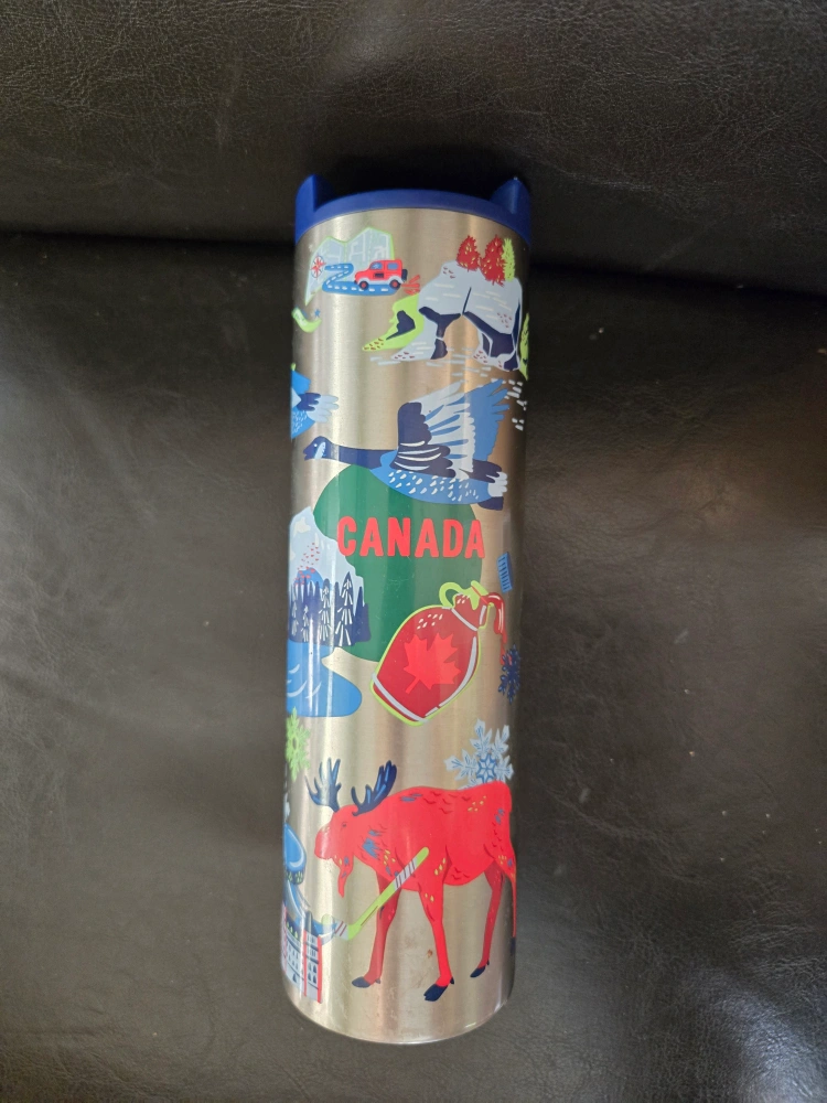 Here's a Starbucks Canada tumbler, perfect for keeping your drinks hot or cold! It holds 16oz / 473 mL and features a fun design celebrating Canada. Originally bought for $34.95 CAN