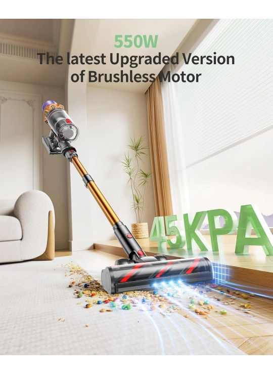 Powerful 550W brushless motor. Up to 60 minutes runtime. Multiple attachments included. Lightweight and easy to use. Brand new in box.