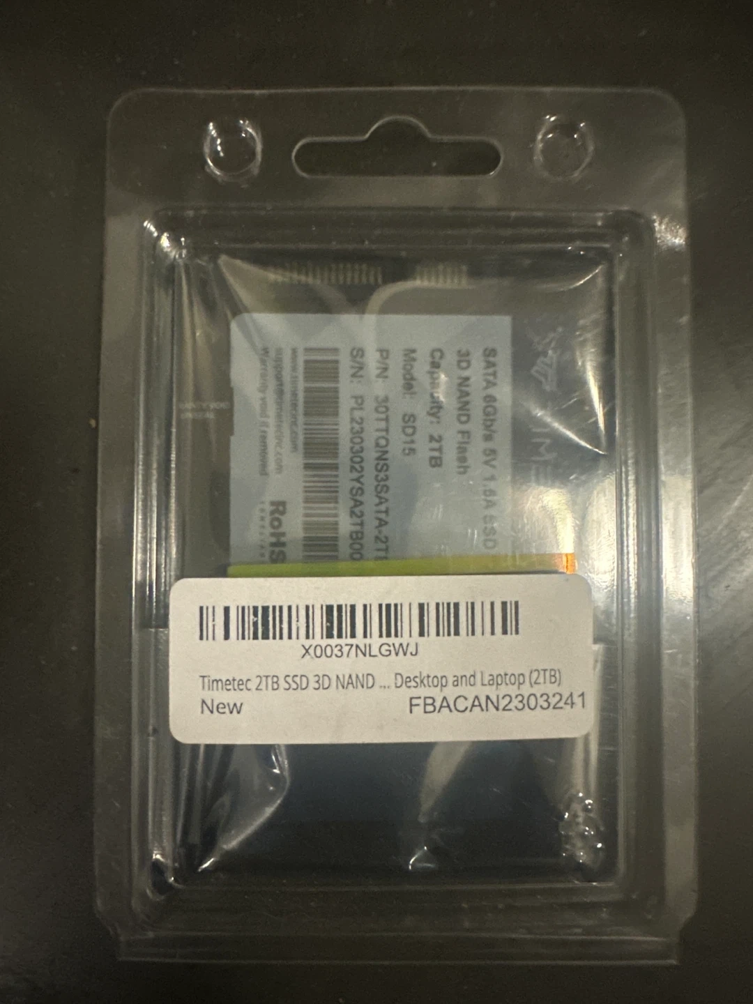 Selling a brand new Timetec 2TB SSD 3D NAND for desktop and laptop use! It's still in its original packaging. Key features: - SATA 6Gb/s - 3D NAND Flash - 2.5" Solid State Drive - Model: SD1S - Capacity: 2TB