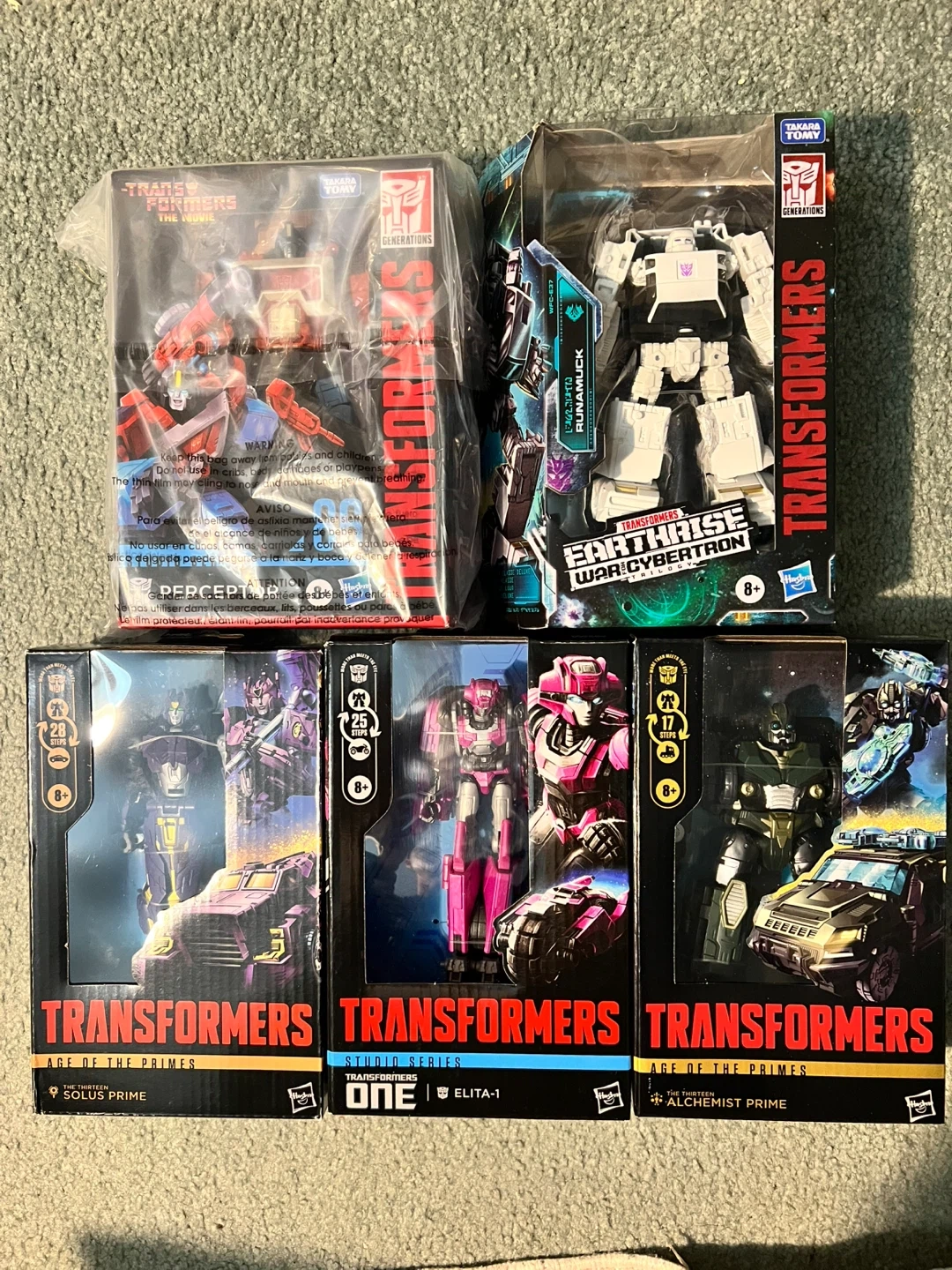 Selling new Transformers toys in their original packaging: - Runamuck (Earthrise War for Cybertron Trilogy) - Perceptor (The Transformers The Movie) - Elita-1 (Studio Series) - Alchemist Prime (Age of the Primes)