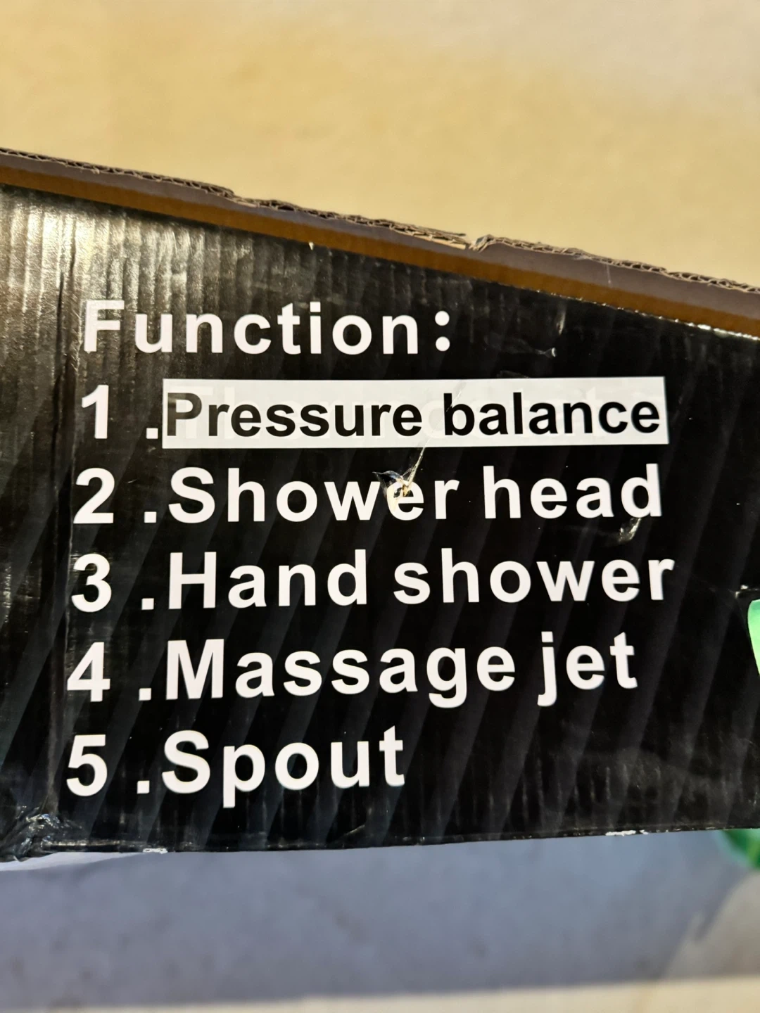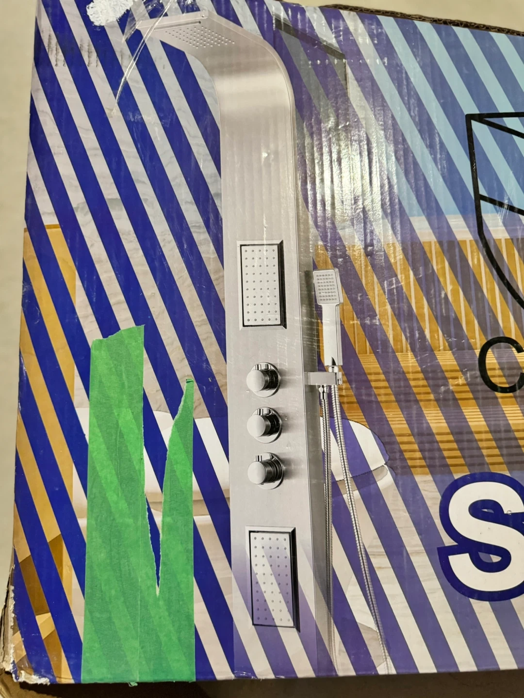 Selling a brand new UPC shower panel system! This system features pressure balance, a shower head, a hand shower, a massage jet, and a spout. It comes in its original box, ready for installation in your bathroom
