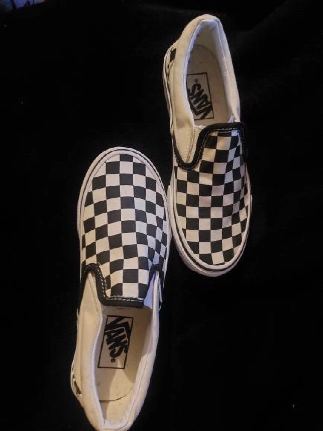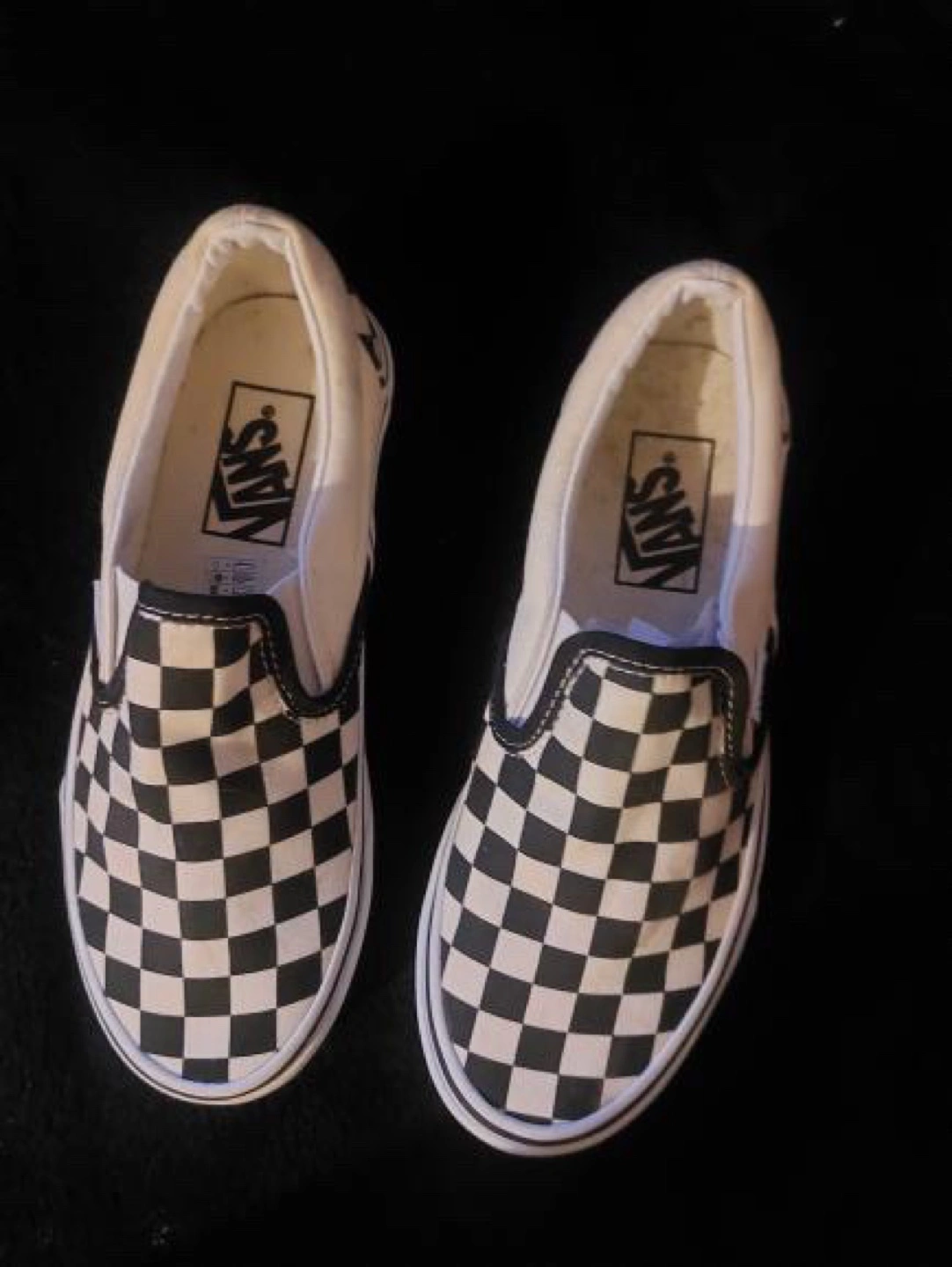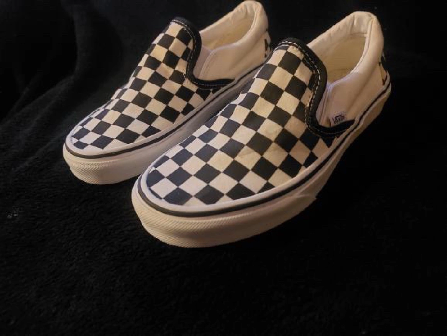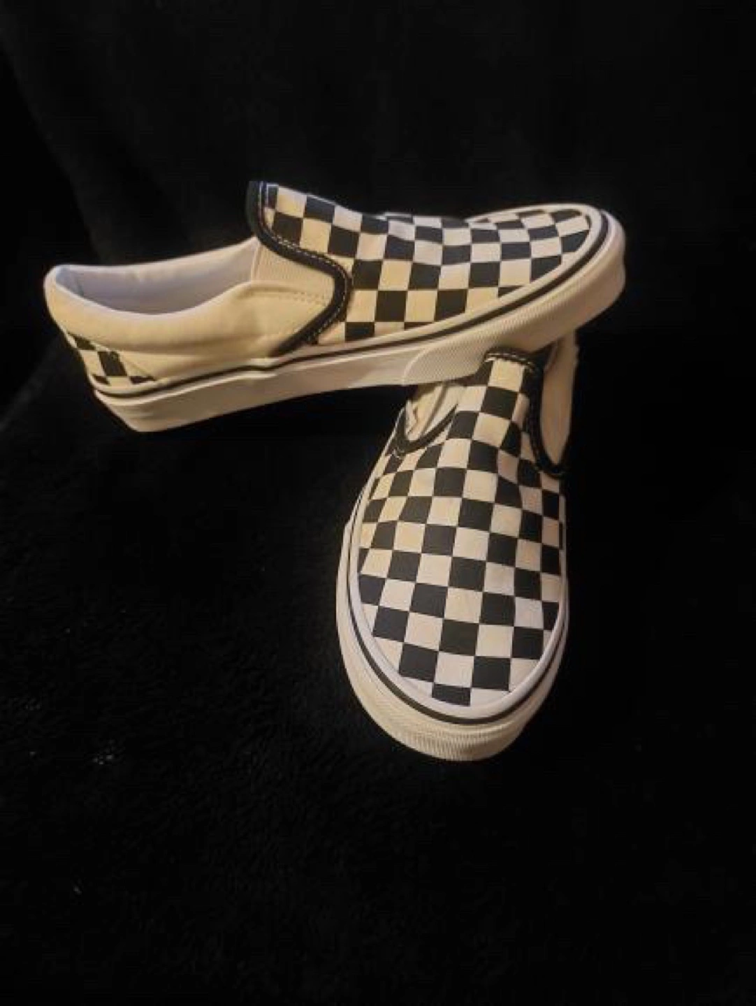 These New Unisex Classic Vans slip-on shoes have a black and white checkerboard pattern and have never been worn outdoors as you can see in the picture the shoe soles show no wear and are not dirty. These shoes have only been tried on indoors. These Vans are stylish and comfortable and great for everyday wear. Both men and woman can wear it. It’s a size 6 in girls/woman or size 4.5 for men/boys. Looking to sell ASAP and asking for $40 Box not included!