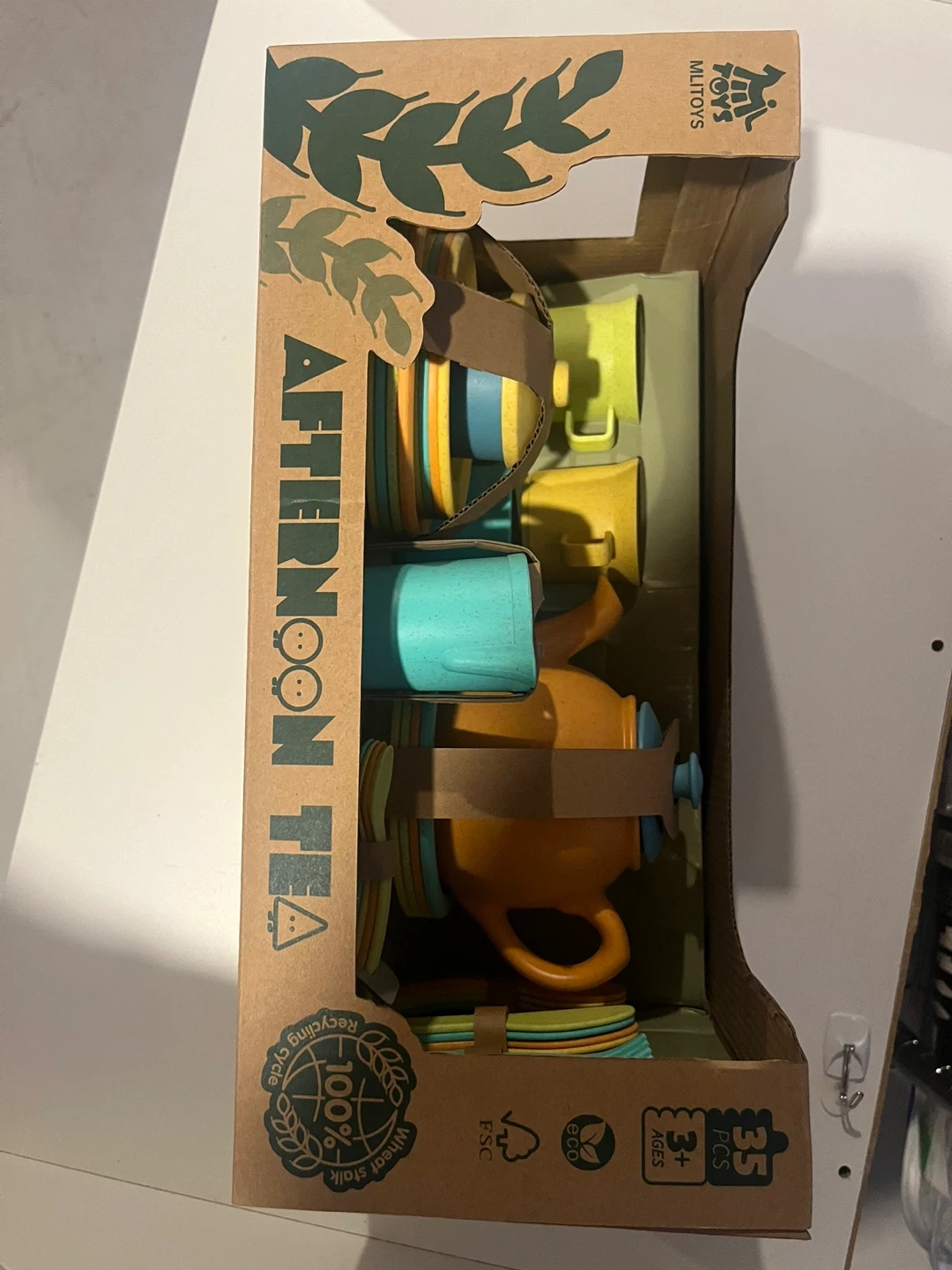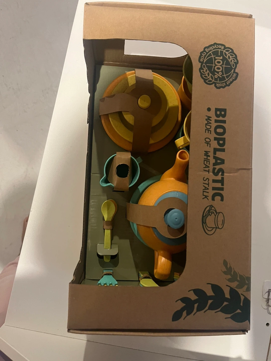 Selling a brand new Vilac Toys Afternoon Tea Set! It's made of bioplastic from wheat stalk, so it's eco-friendly. Perfect for kids aged 3 and up who love playing pretend