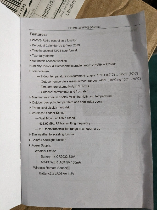 New Open Box - Weather Station clock w/ projector & wireless sensor. Pickup in Stratford. Smoke-free/Pet-free home. Checkout other ads for more items