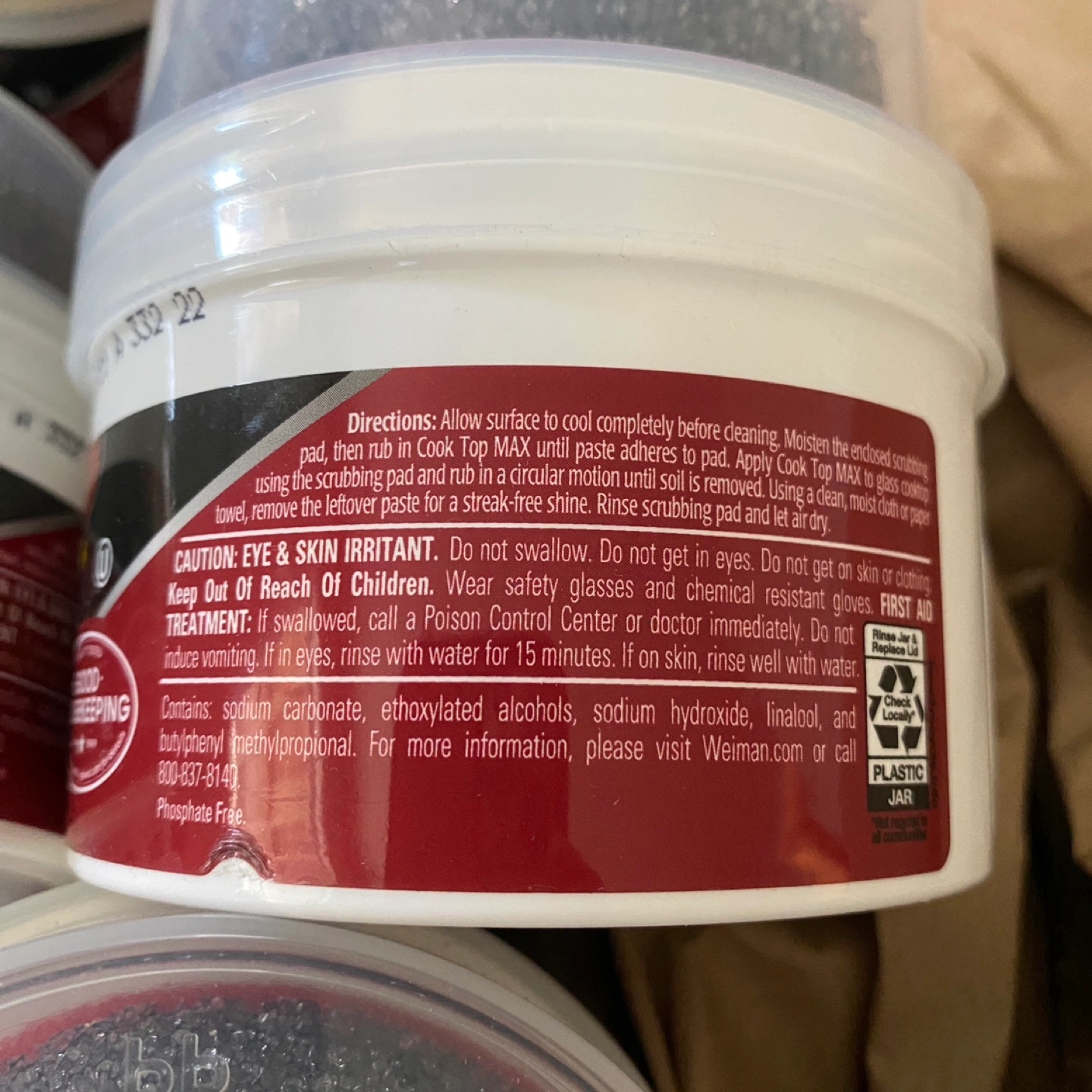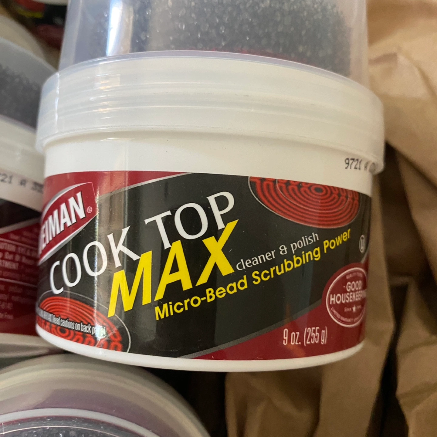Brand New $10 Each Pick up only in Aspen SW Weiman Cook Top MAX is specially formulated with Advanced Micro-Bead Technology to easily remove burned-on food, grease and watermarks, leaving glass sparkling. Micro-Beads provide extra scrubbing power to cut through the toughest burned-on foods. They are guaranteed not to scratch. Cook Top MAX also contains glass protectants to maintain the cooking effectiveness of the glass cooktop surface. Recommended for: All major cooktop manufacturers Size: 9 fl oz with cleaning pad