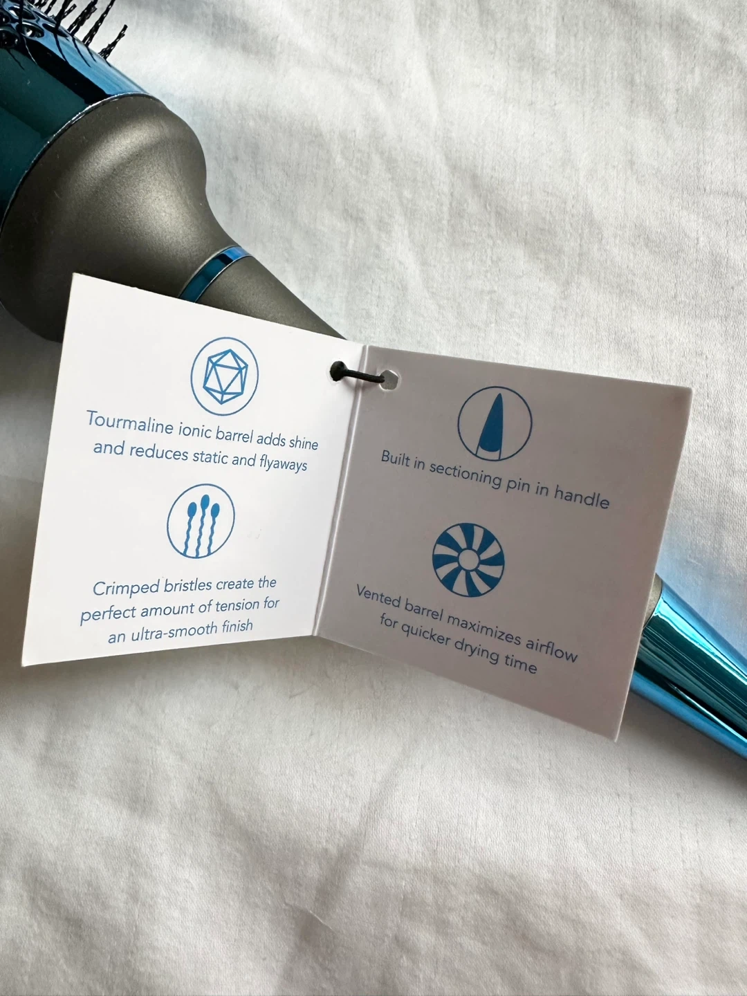 Brand new with tags Wet Brush - Pro Tourmaline Blowout brush. The tourmaline ionic barrel adds shine and reduces static and flyaways. The crimped bristles create the perfect amount of tension for an ultra-smooth finish. Plus, the vented barrel maximizes airflow for quicker drying time. Built-in sectioning pin in the handle. Medium size. Pickup in Richmond, cash only.