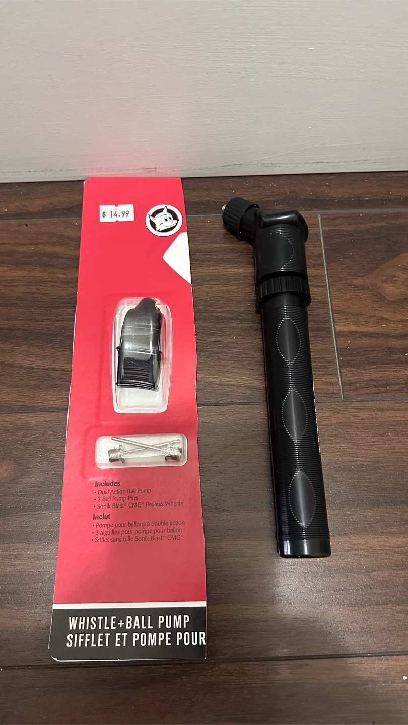 I'm selling a brand new whistle and ball pump combo! It includes a dual-action ball pump and a Sonik Blast CMG Pealess Whistle. It also comes with 3 needles for inflating balls. Originally bought for $14.99