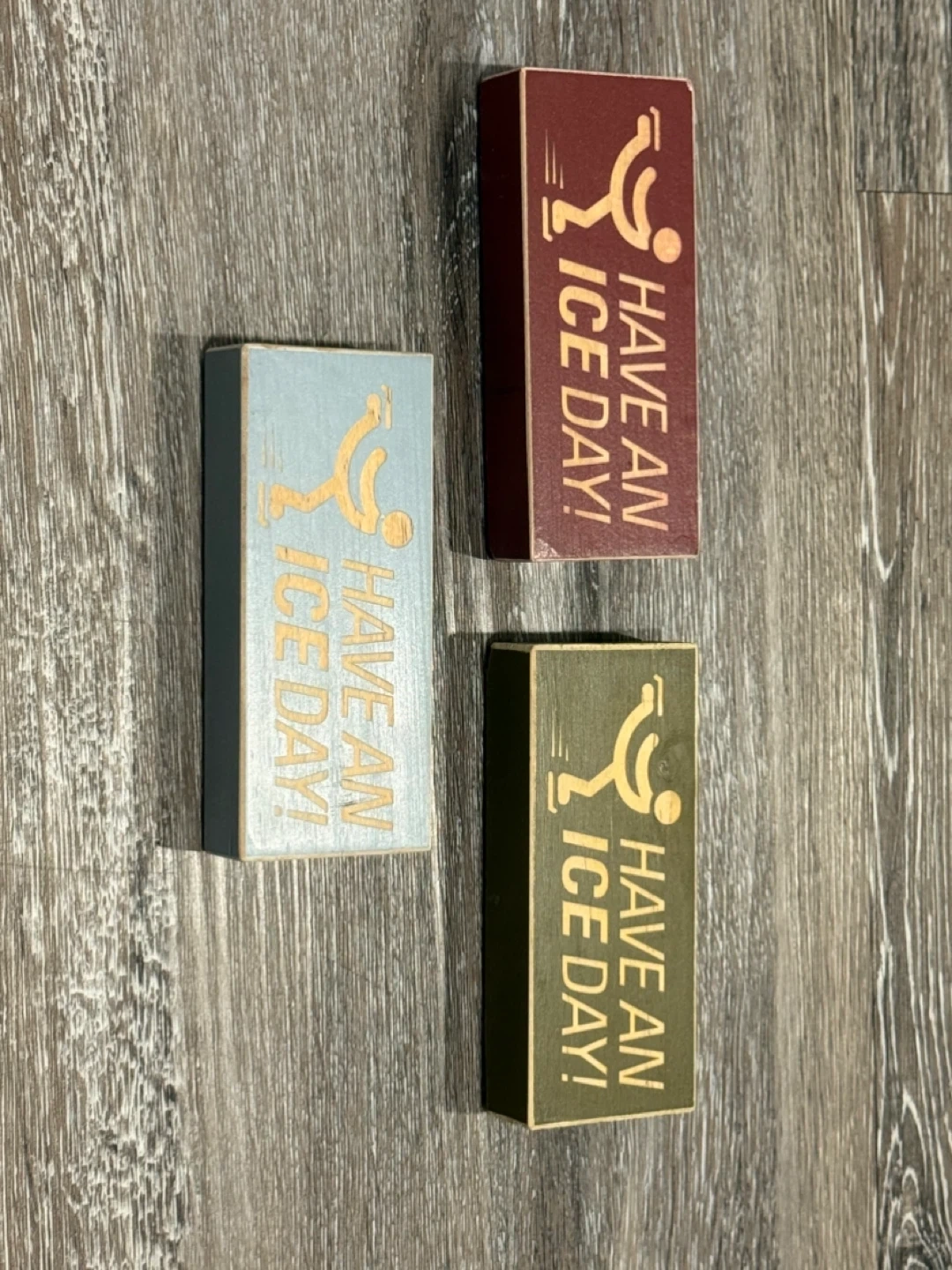 Selling three Willow Have an Ice Day! decor blocks. They come in red, blue, and green. Perfect for adding a touch of fun to any room! 4 x 1-5 inches Pick up Sage Hill NW Cash only Check out my other listings Pet and smoke free home