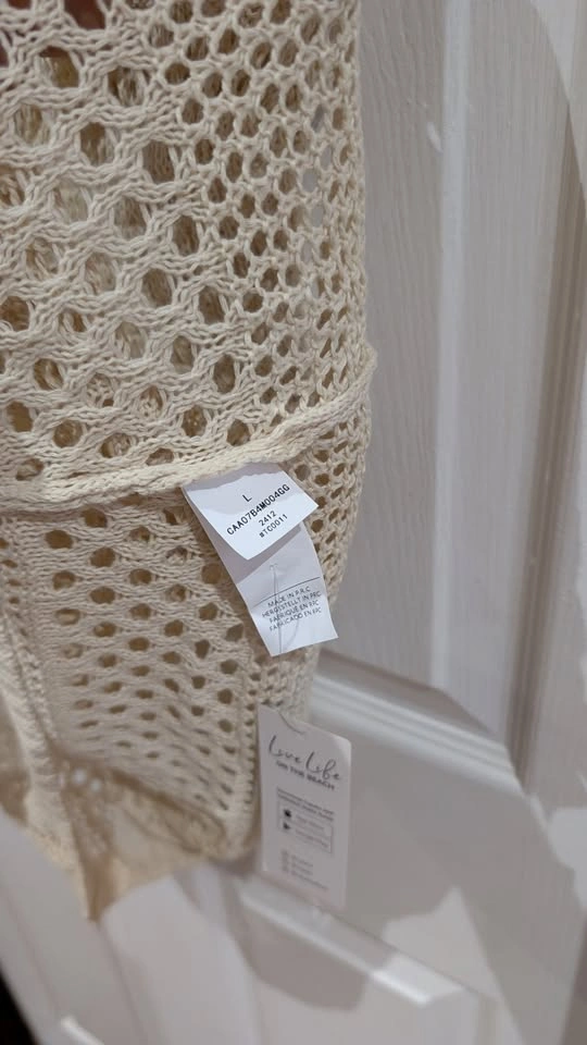 New with Tag - Cupshe Beige Crochet V-Neck Dress (L)