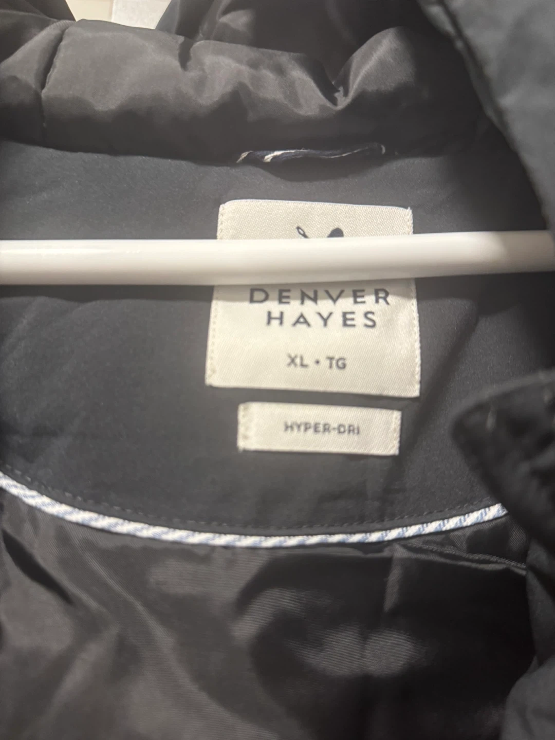 Denver Hayes Hyper-Dri puffer coat in size XL. This coat is black and has a water repellent, impermeable & down design. Originally bought for $199.99, new with tags from smoke and pet free home gift from husband and forgot return window must be able to pick it up from new westminster next to royal columbia hospital.