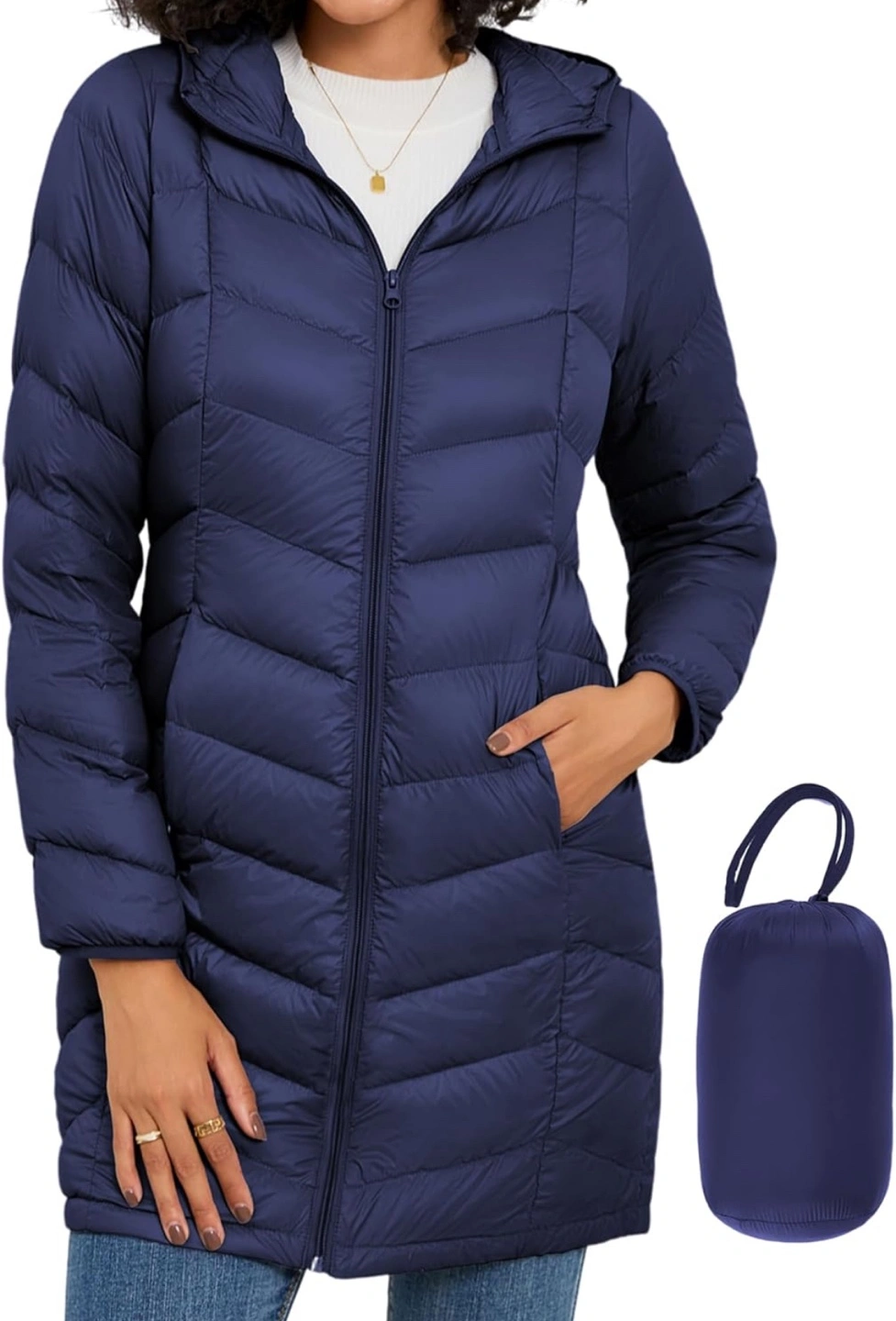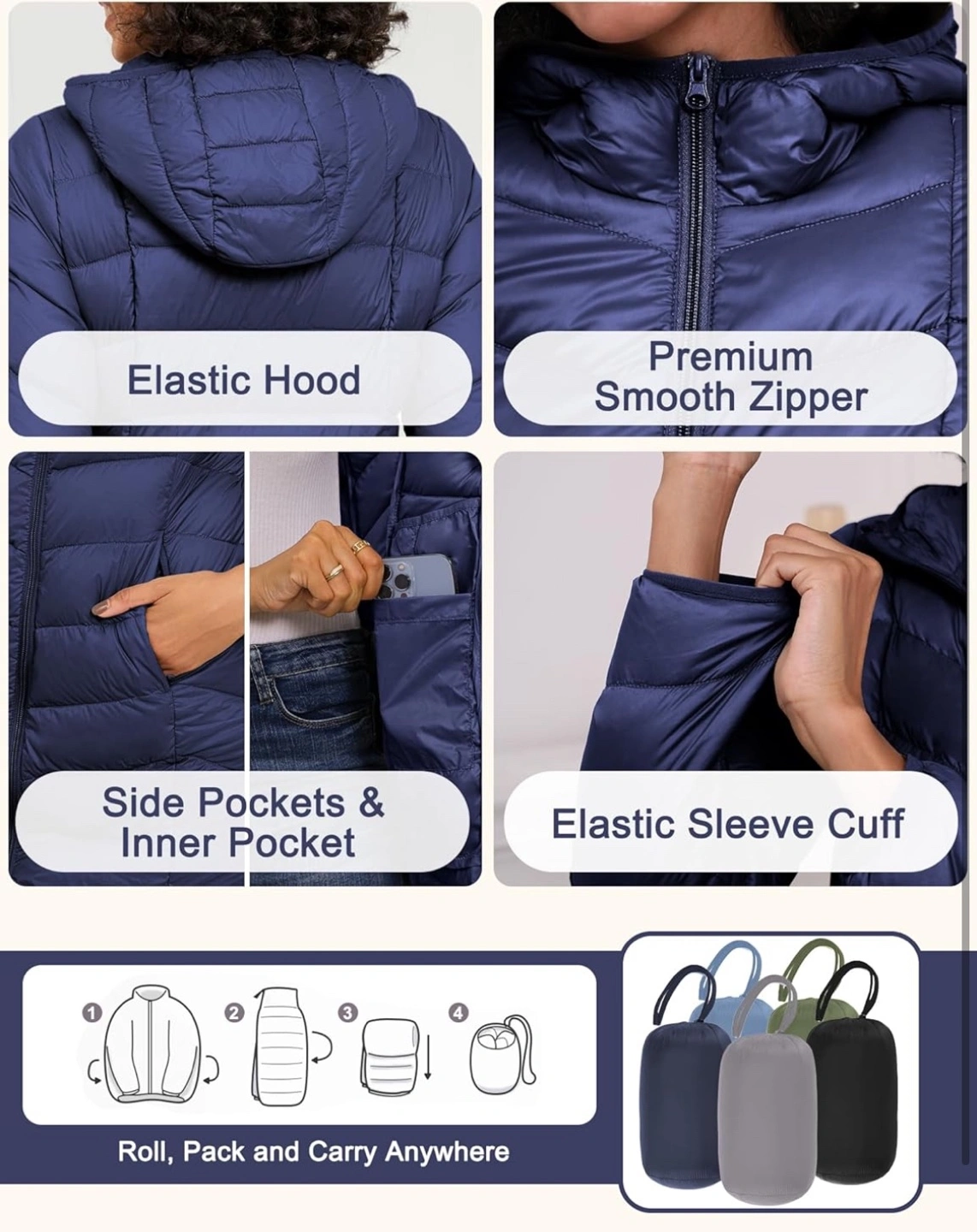 New! Retails for $100 𝐔𝐋𝐓𝐑𝐀𝐋𝐈𝐆𝐇𝐓 𝐀𝐍𝐃 𝐖𝐀𝐑𝐌 𝐂𝐎𝐀𝐓: This women puffer jacket is filled with lightweight polyester - warm for cold winter. 𝐀𝐃𝐃𝐄𝐃 𝐂𝐎𝐕𝐄𝐑𝐀𝐆𝐄 𝐅𝐎𝐑 𝐀𝐃𝐄𝐐𝐔𝐀𝐓𝐄 𝐖𝐀𝐑𝐌𝐓𝐇:This mid-length puffer jacket falls just above the knee, and features an attached hood with binding hem, elastic cuffs to keep the wind out. It can protect you from the cold weather. 𝐅𝐋𝐀𝐓𝐓𝐄𝐑𝐈𝐍𝐆 𝐅𝐈𝐓: The quilted chevron design and slightly tailored detail make this hooded winter jacket stylish while still flattering your figure. The highlighted contrast lining makes this coat more eye-catching. 𝐂𝐎𝐍𝐕𝐄𝐍𝐈𝐄𝐍𝐓 𝐏𝐎𝐂𝐊𝐄𝐓𝐒: 2 invisible zippered pockets can both store your essentials and warm your hands. Lightweight, warm winter coat. Features include: elastic hood, premium smooth zipper, side pockets, inner pocket, and elastic sleeve cuffs. Packs into a small pouch for easy travel. Excellent condition.