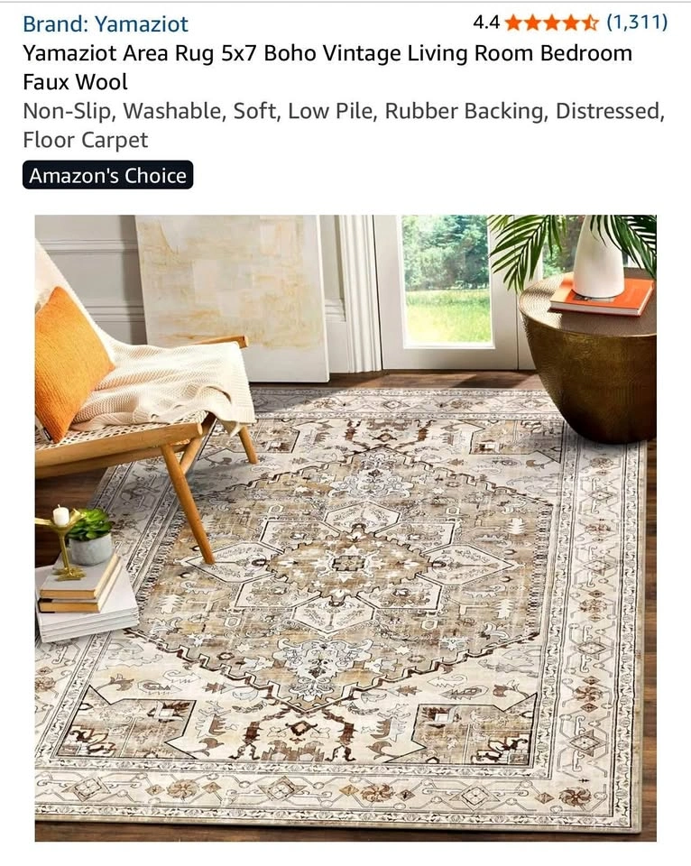 New and sealed Yamaziot area rug, 5x7 feet, extra soft with a beige/brown color scheme. Boho vintage design, made of 100% polyester faux wool. It has a unique beautiful printed floral pattern and a trendy faded style. Non-slip TPR rubber backing. Machine washable in cold water (no bleach), air dry. Low pile (0.24 inches). Pick up in Courtice. Please check my other listings!