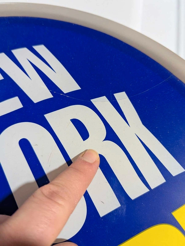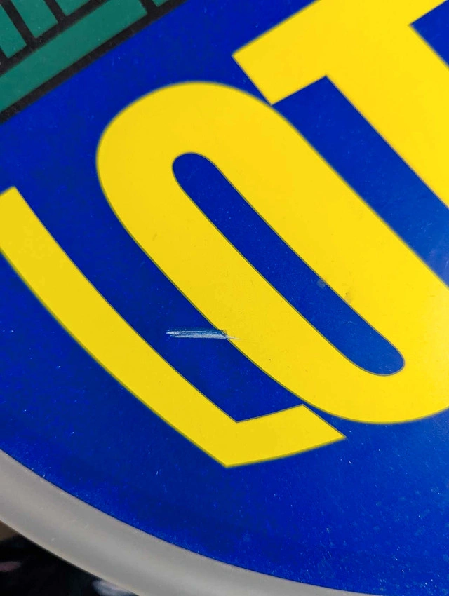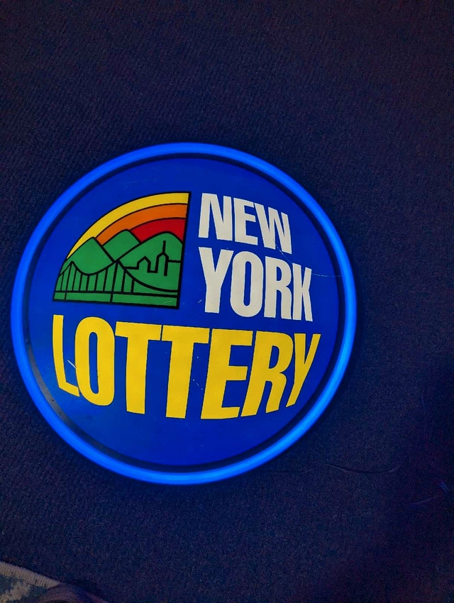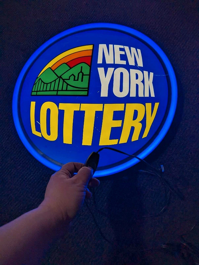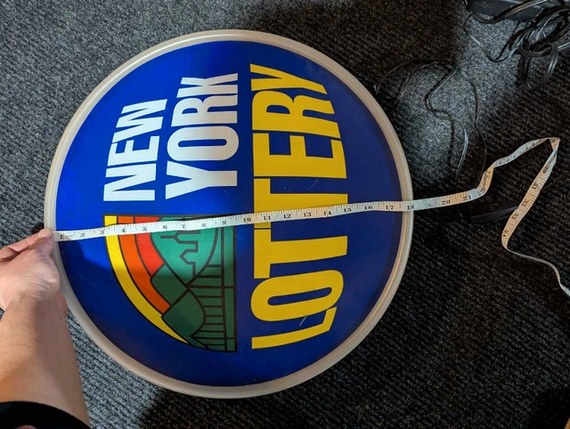 New York Lotto Sign Vintage Lights up does solid and flashing Was seldom used Came directly from NY Lotto Vendor Collectable! In good condition with a few minor scuffs that aren't noticeable from a few feet away, there is a small hairline crack on the outer part of the plastic as depicted but doesn't impact functionality or lighting. Looks great lit up still! Asking price reflects some wear and tear - comparables are 350-500+