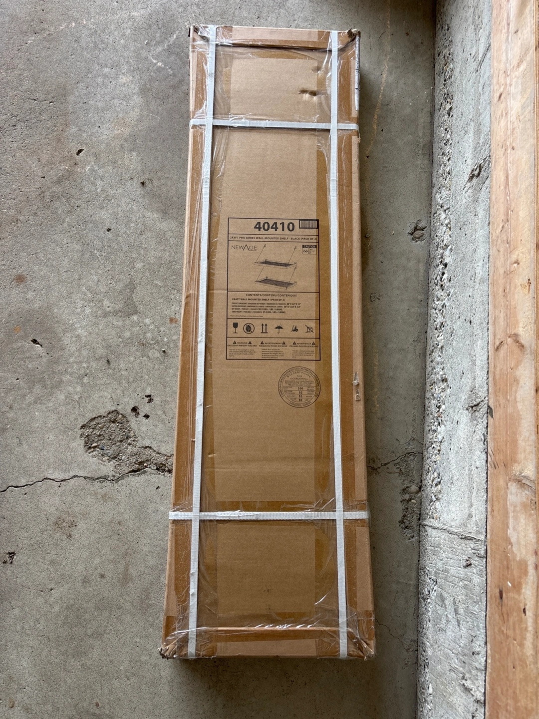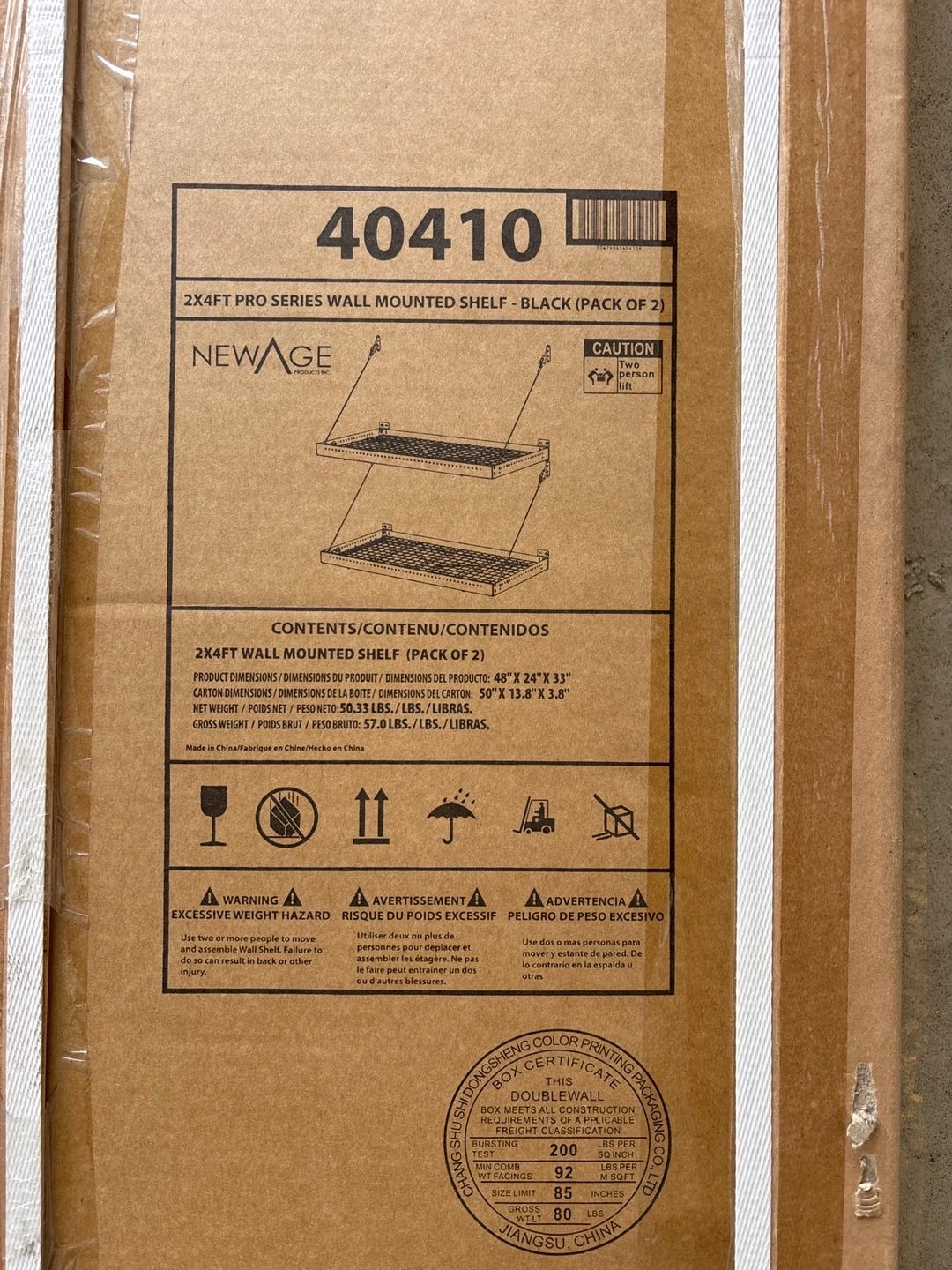 Selling a NewAge 2x4FT Pro Series Wall Mounted Shelf (Pack of 2). It is still in its original packaging. Product dimensions: 48" x 24" x 33" Carton dimensions: 50" x 13.8" x 3.8" Gross weight: 57.0 lbs