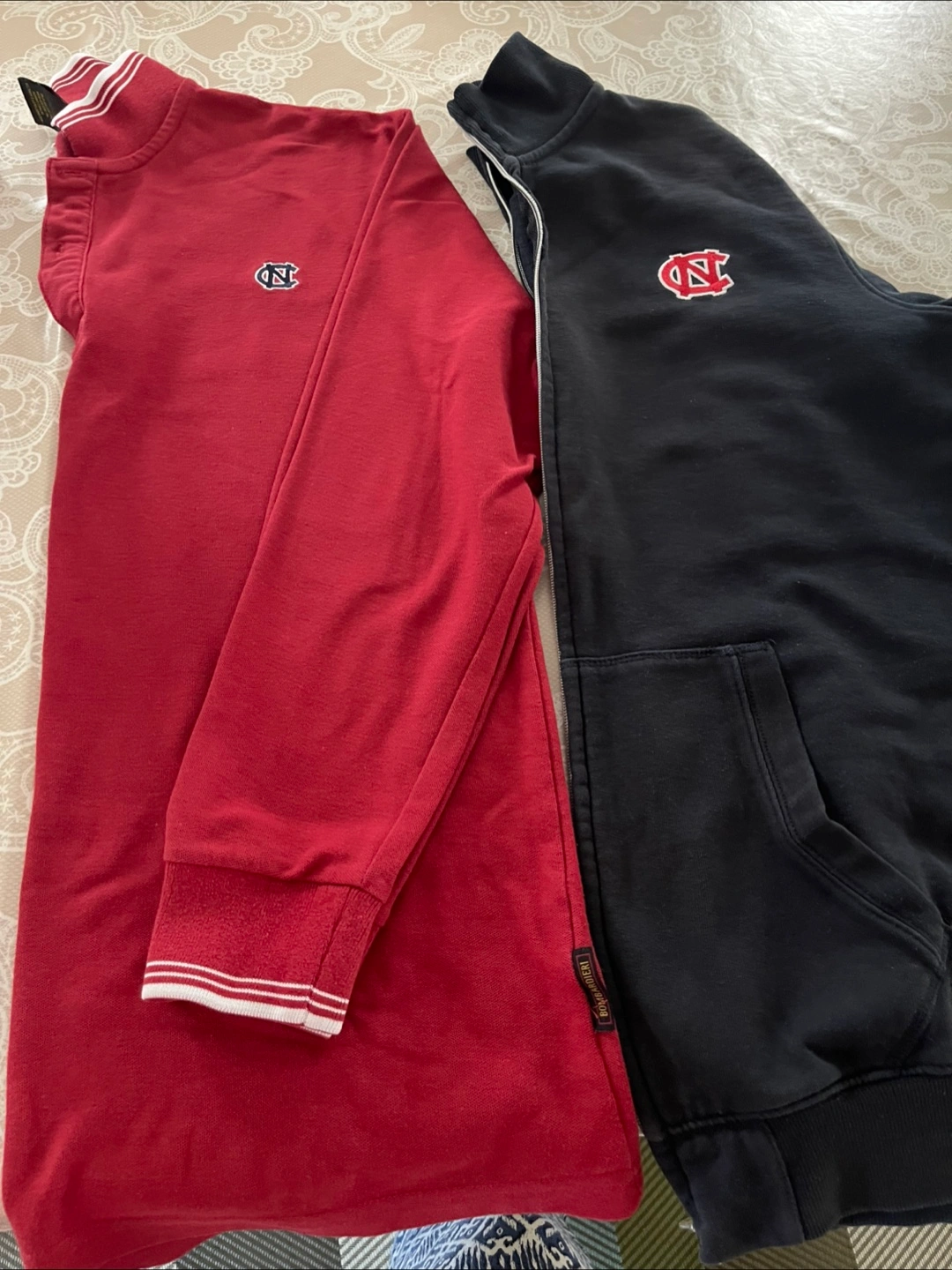 Two tops for sale! One is a red long sleeve polo shirt and the other is a sweater both medium