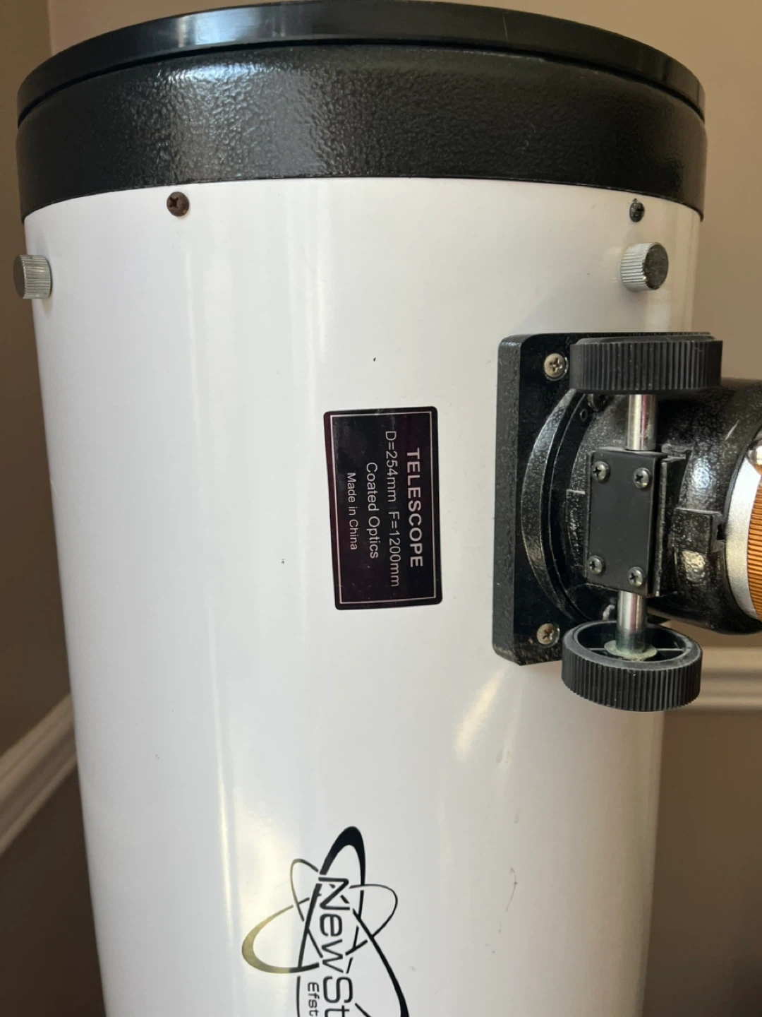 Selling a NewStar telescope. It features a D=203mm aperture and a focal length of F=1200mm. Perfect for exploring the night sky! Missing eye pieces (lenses)