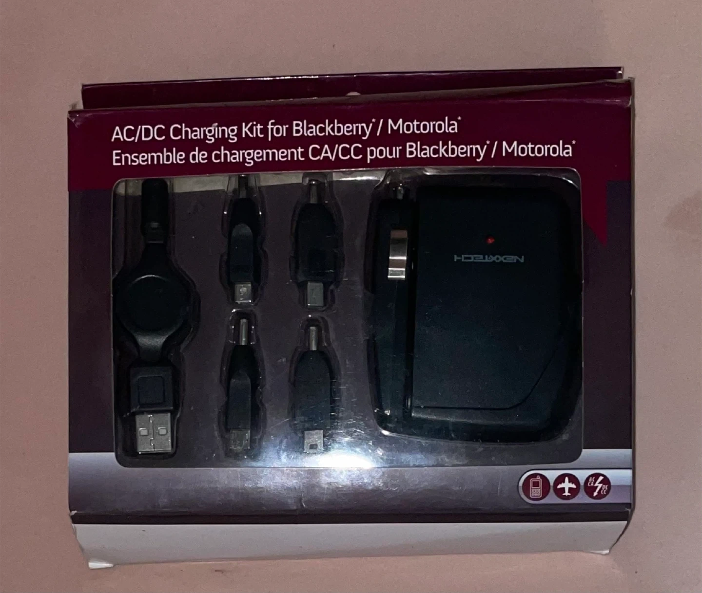 Selling a Nextech AC/DC Charging Kit for Blackberry and Motorola devices! It comes with all the necessary components in its original box. Perfect for keeping your older devices charged up and ready to go