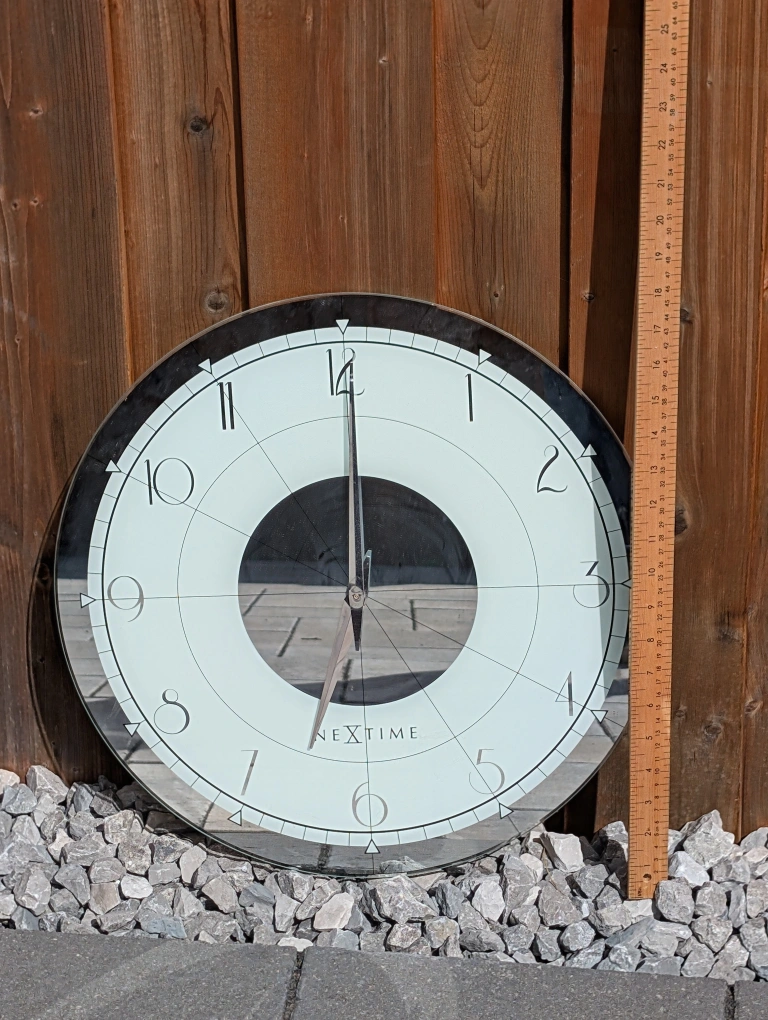 Selling a Nextime round wall clock. It's in great condition and ready to add a touch of style to your space about 18 inches Pickup in Markham intersection of 16th Ave and BurOak or Etobicoke intersection of Finch and Carrier during certain weekdays.