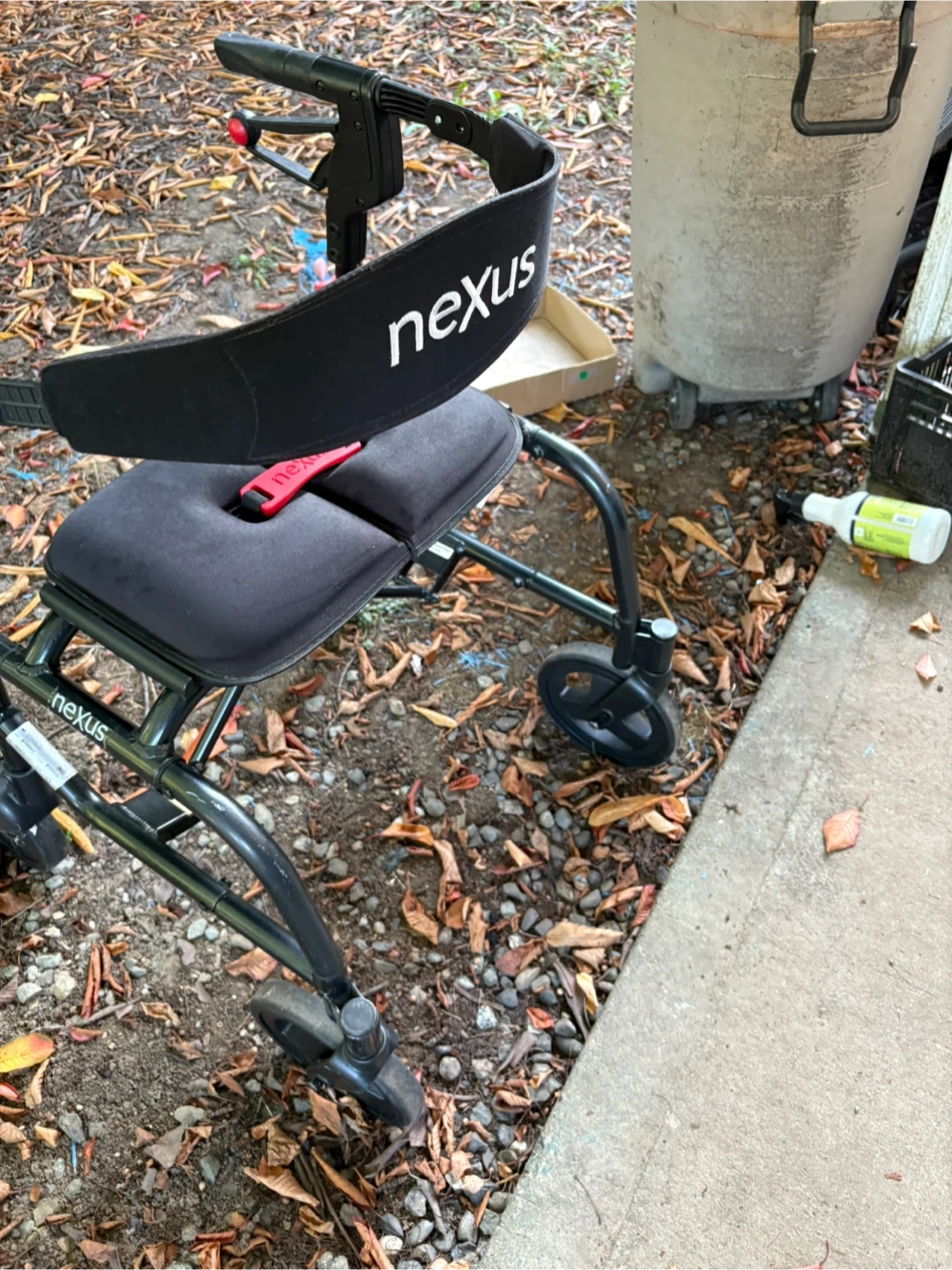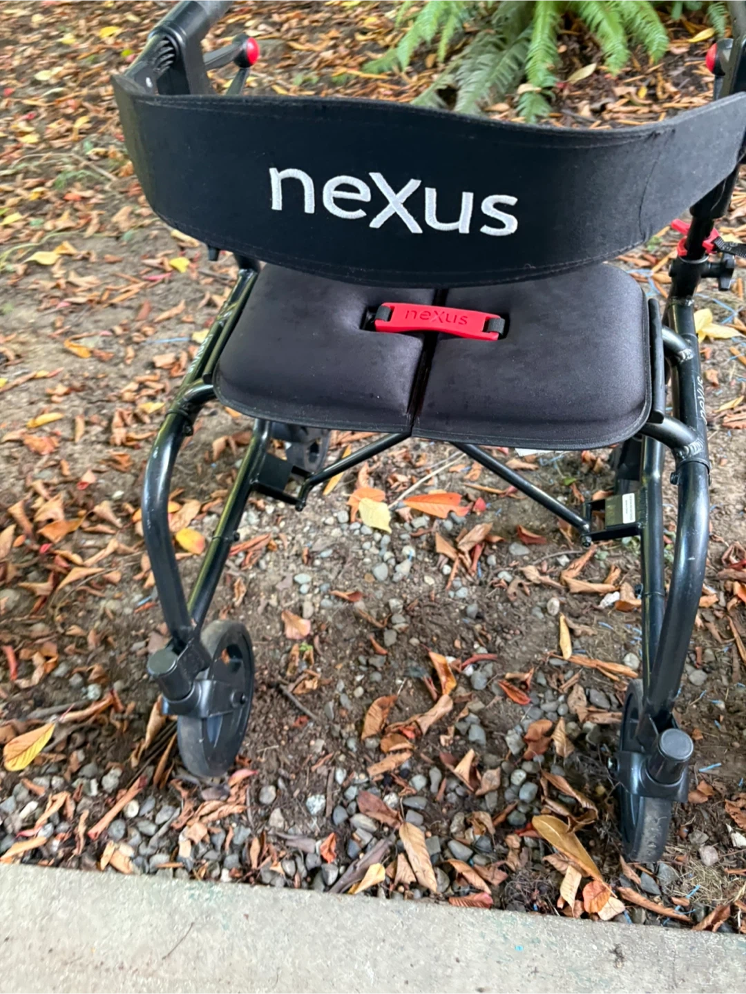 Nexus walker with a seat in good condition! It's black with red accents and provides great support. Perfect for anyone needing a little extra help getting around