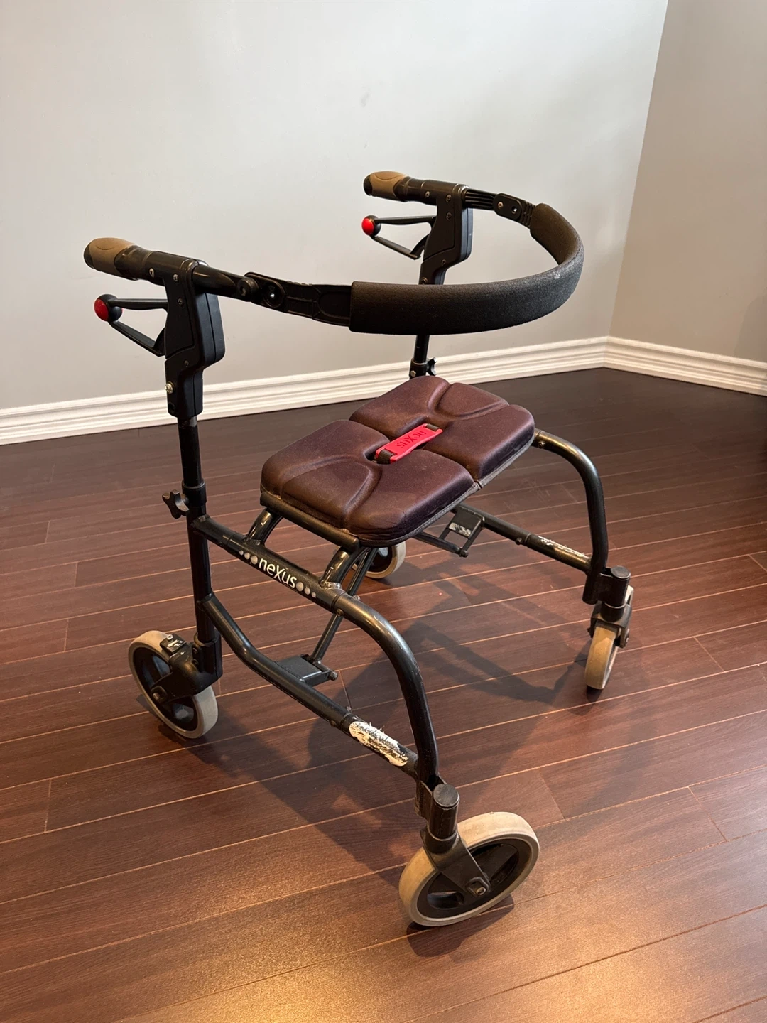 Selling a Nexus walker, perfect for anyone needing a little extra support. It comes with a built-in seat so you can take a rest whenever you need to. The walker is in good condition and ready to go to a new home!