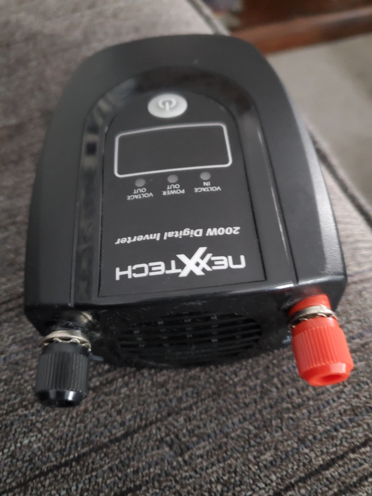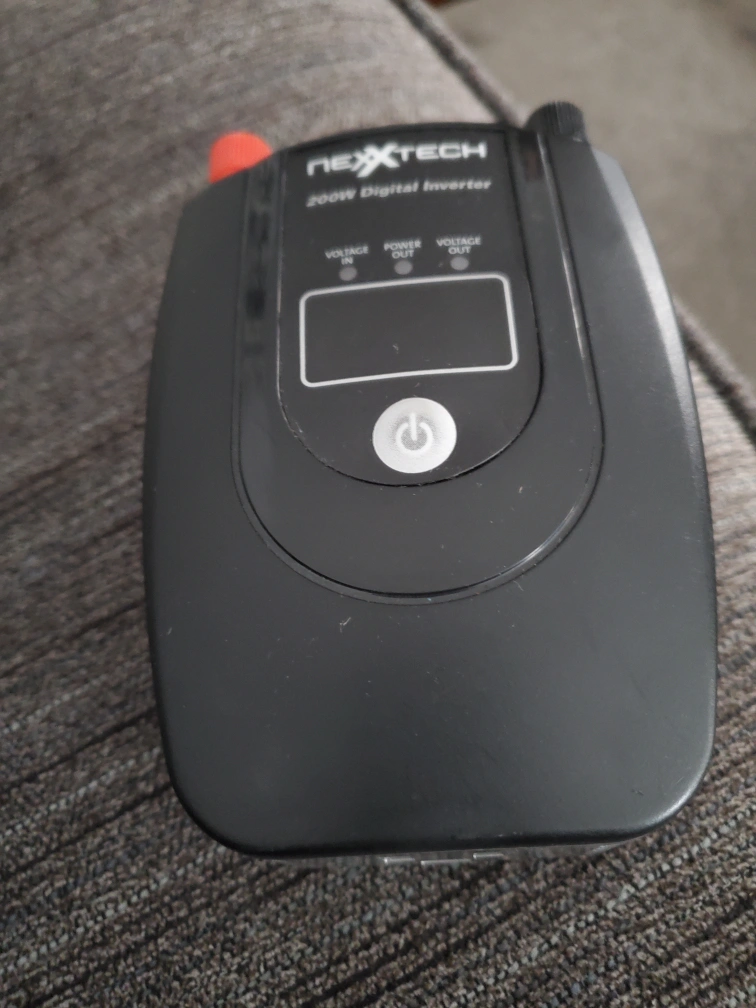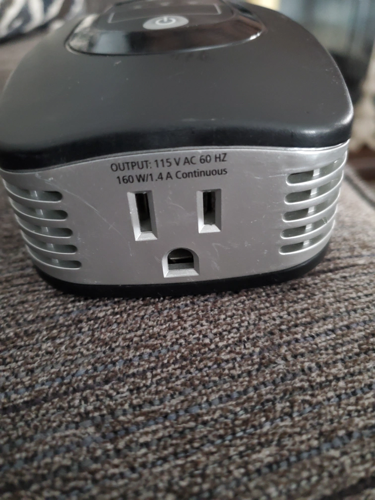Show allPortable power inverter. Converts 12V DC to 115V AC. Features USB and AC outlets. Compact and lightweight design. Ideal for travel or emergencies.