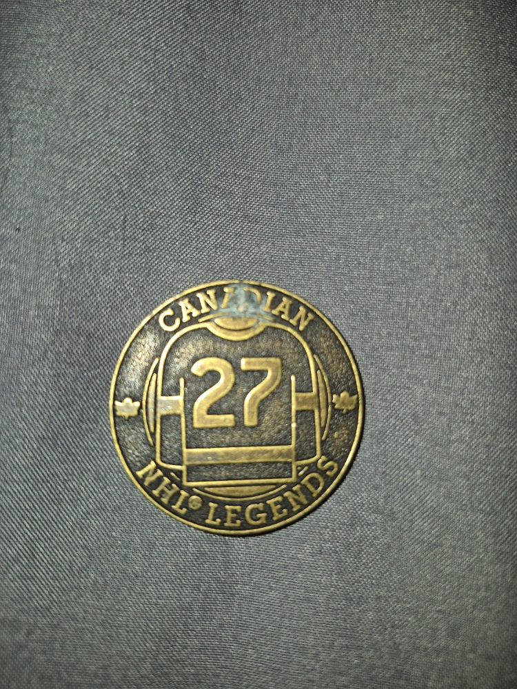 Here's a commemorative coin for Darryl Sittler, an NHL legend! It features his name and image on one side, and a jersey with the number 27 on the other. A great piece for any hockey fan or collector!