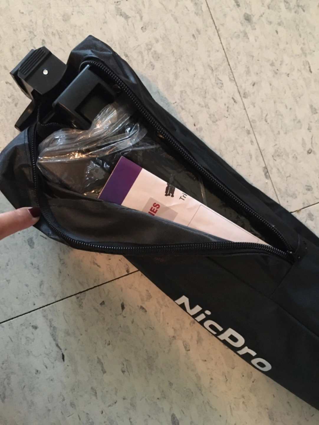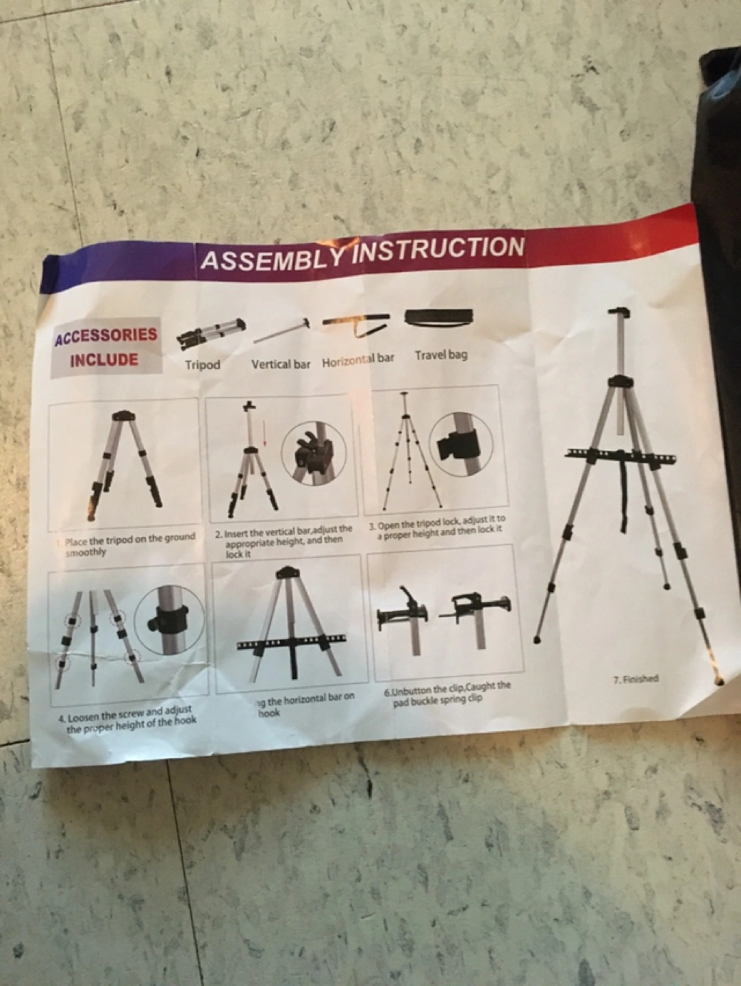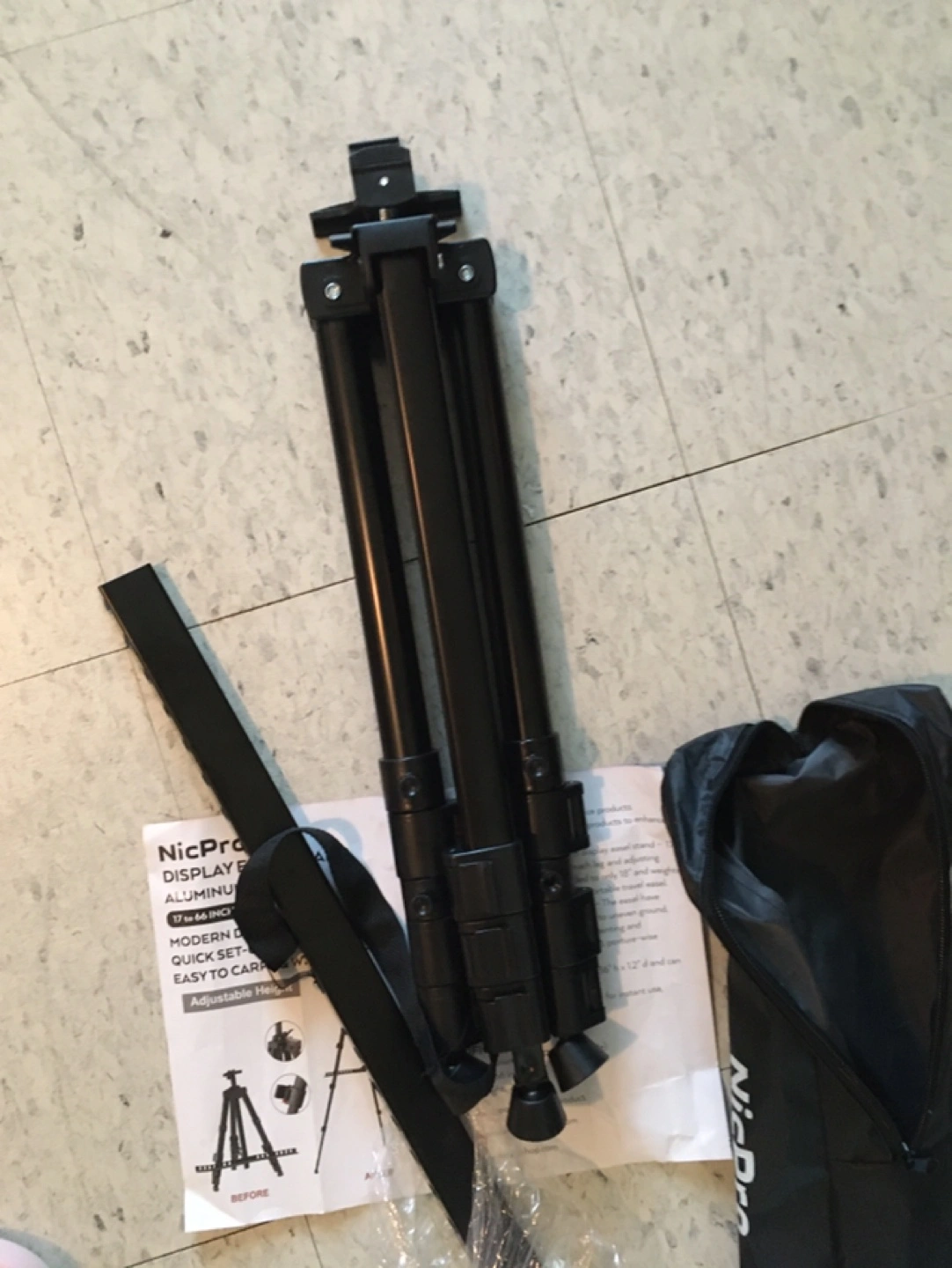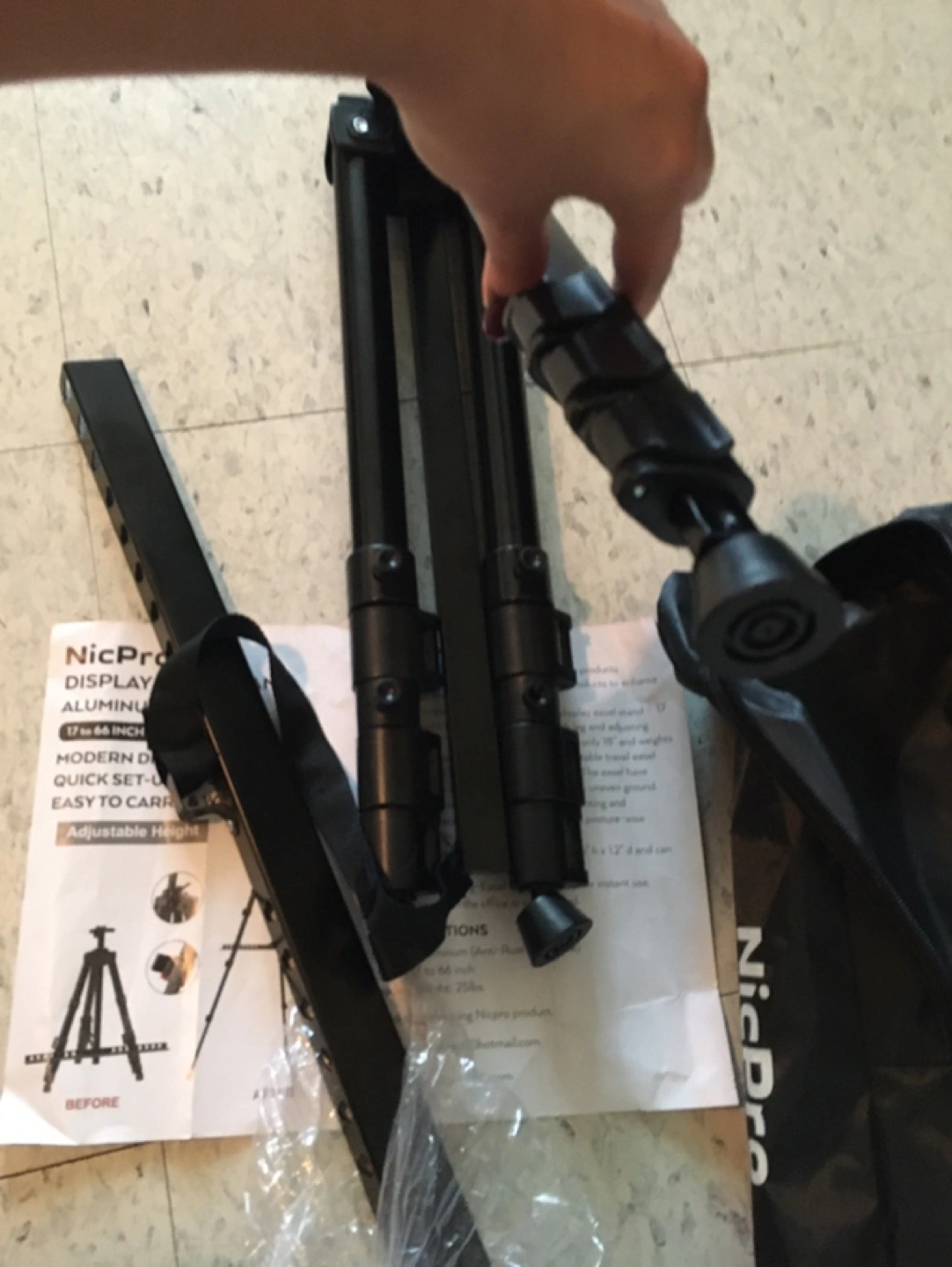 This NicPro display easel stand is made of aluminum and is adjustable from 17 to 66 inches tall. It's designed for modern display and is quick to set up and durable. It's also easy to carry and wide base for support. Accessories include: tripod, vertical bar, horizontal bar, and travel bag Looks like it only holds up to 35 inches canvases Pick up:toronto down town west(adelaide and niagara)