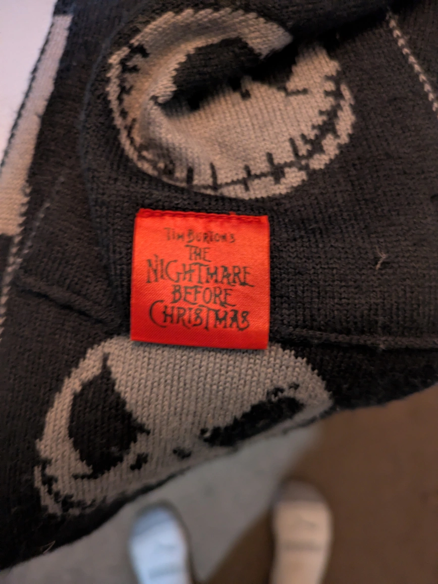 Cozy up with this Nightmare Before Christmas scarf! It features Jack Skellington's iconic face and is perfect for adding a touch of spooky fun to your outfit