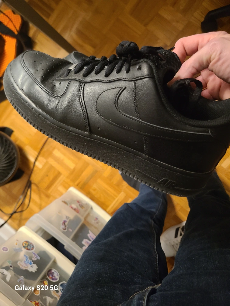 Men's black leather Nike Air Force 1 '07. Classic sneaker style. Slightly used.