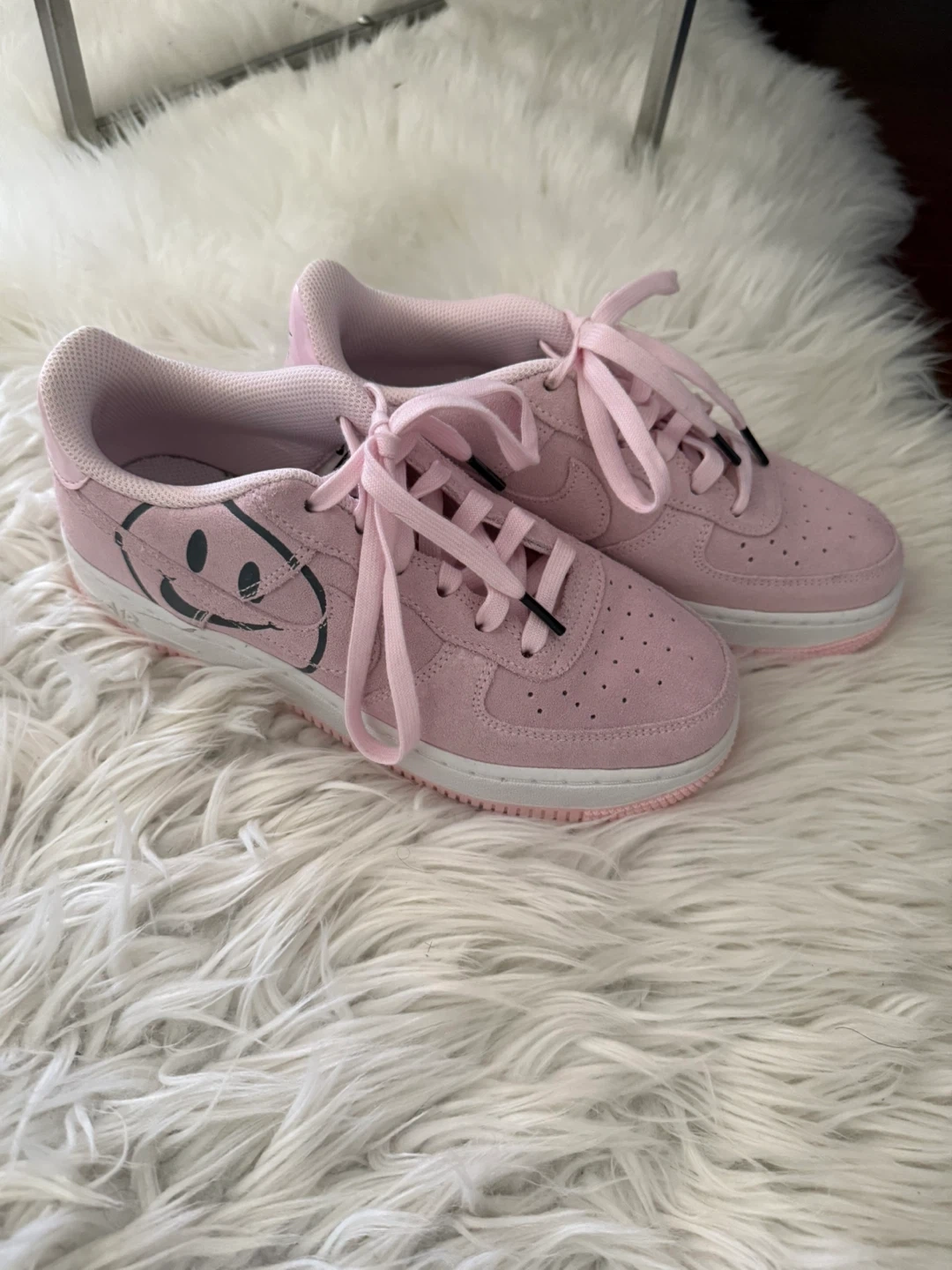 Selling a pair of Nike Air Force 1 '07 in a lovely pink colour. These are a youth size 4.5Y. They have a cute 'Have A Nike Day' smiley face detail on the side! The manufacturing date is 2018 August 15.