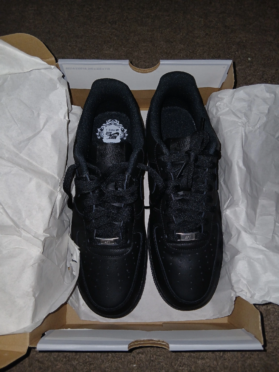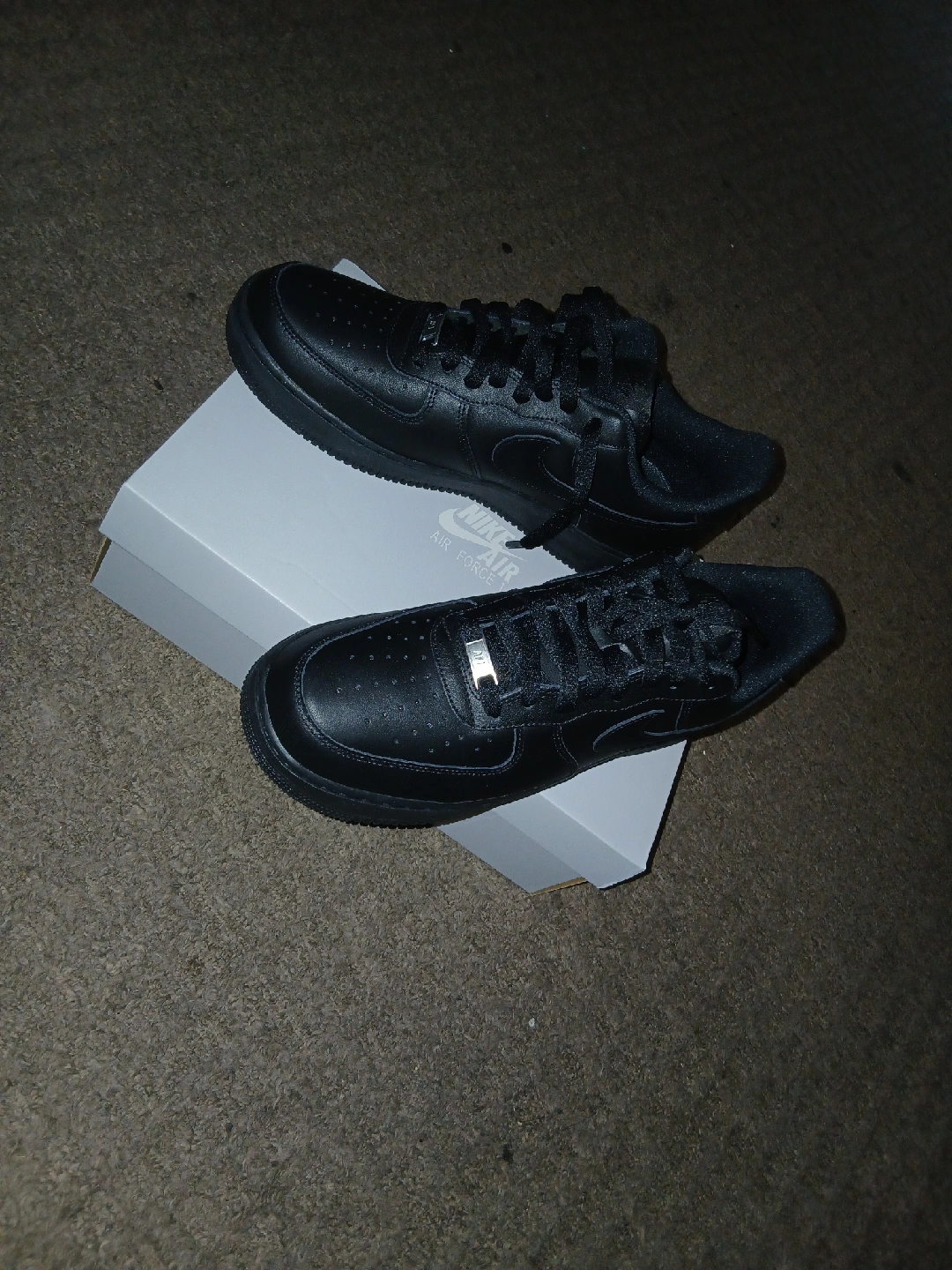 Selling a pair of Nike Air Force 1 sneakers in black! They come with the original box and are in great condition. Perfect for everyday wear or adding to your sneaker collection