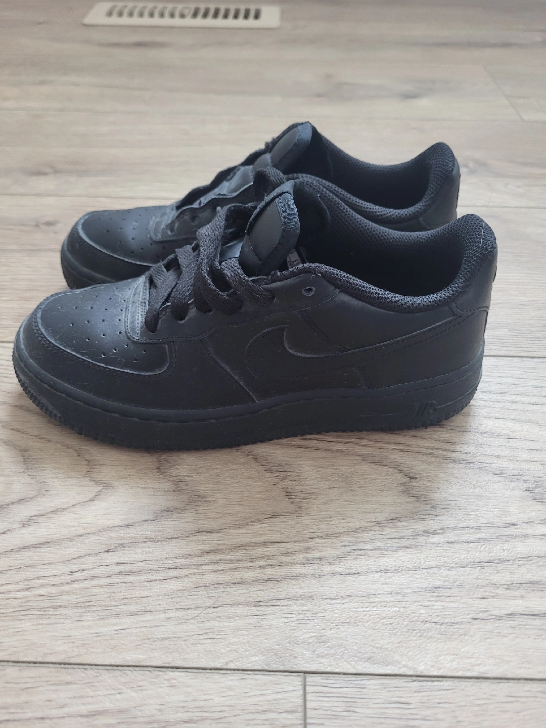 Selling a pair of Nike Air Force 1 sneakers in black. The size is 4. Great for everyday wear!