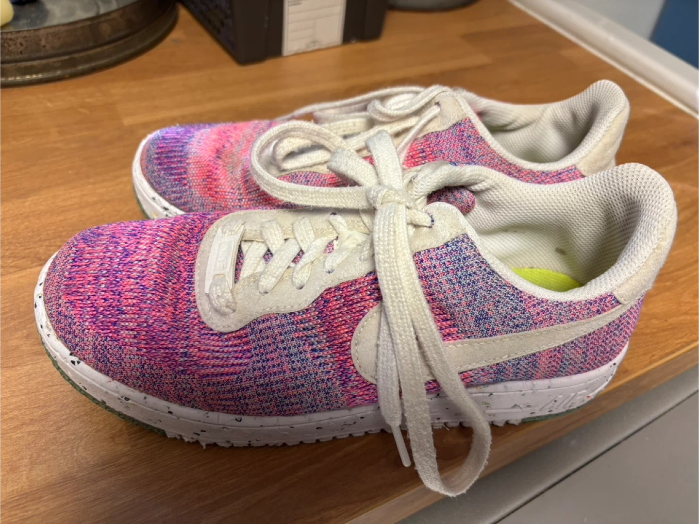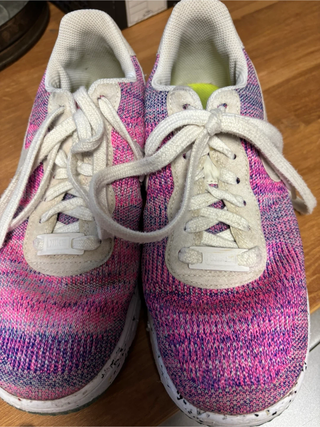 Selling a pair of Nike Air Force 1 Crater sneakers! They're in good used condition and ready for a new home. The Crater design gives them a unique look with the speckled sole. Perfect for adding a pop of colour to your everyday style Price is for each pair