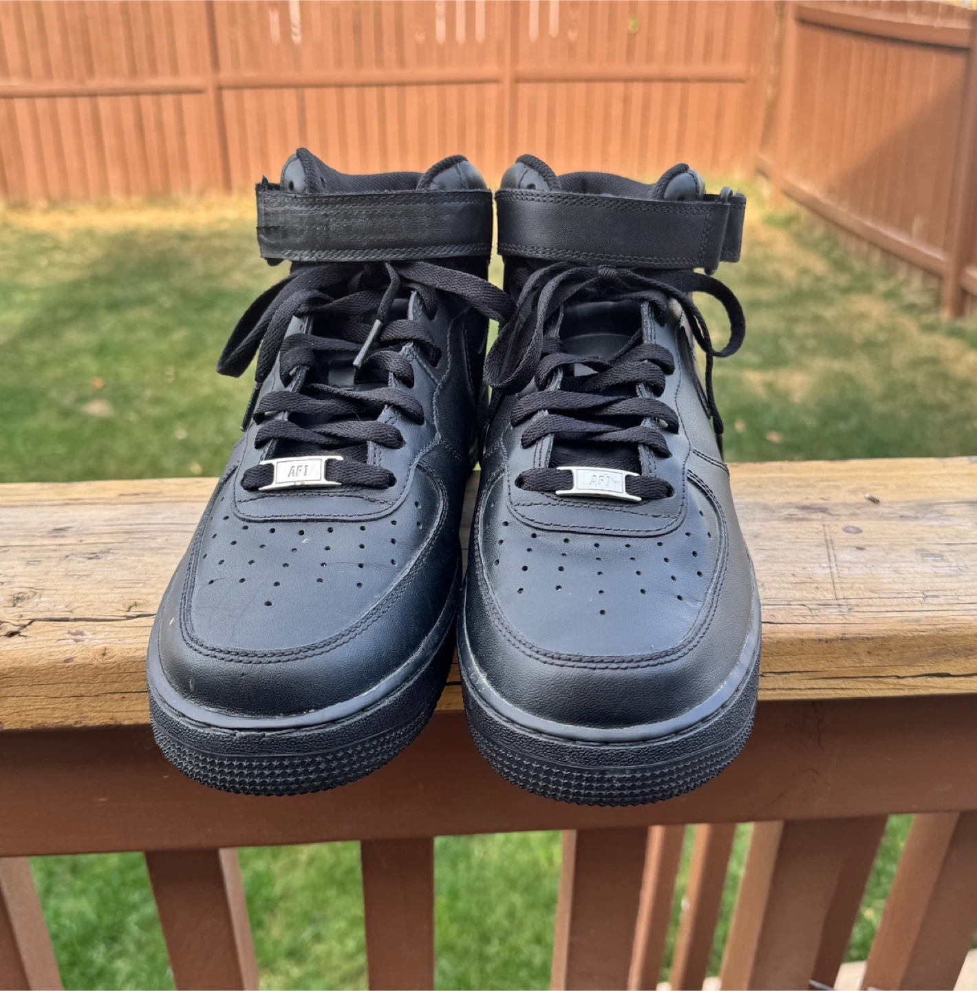 Selling a pair of Nike Air Force 1 High '07 in black. They are in great condition and ready for a new home! These are a men's size 10. Semi used.